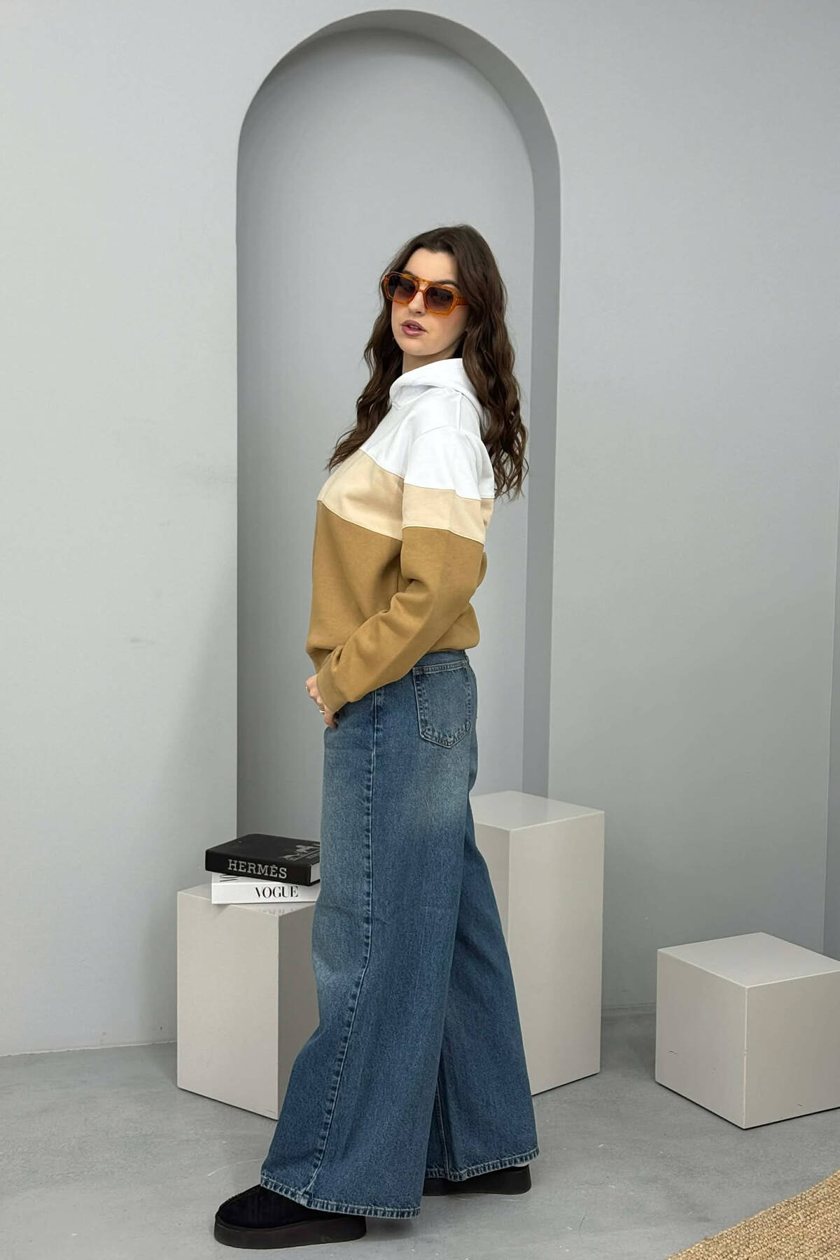SIMPLE FLUFFY WOMEN HOODIE BEIGE/BEZHE