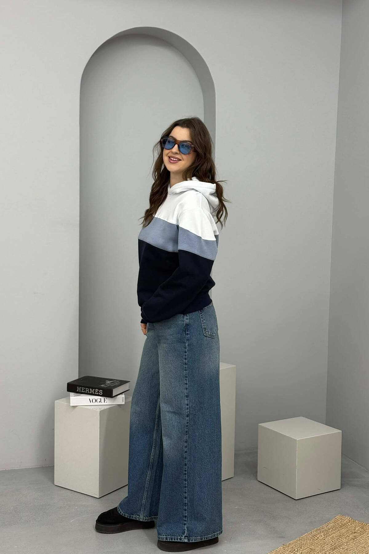 FLUFFY ONE COLOR FRONT WRITTING WOMEN HOODIE CREAM/KREM