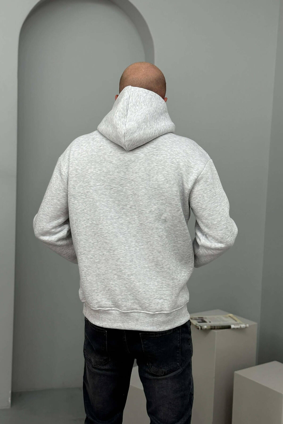 SMALL DETAIL ONE COLOR FLUFFY MEN HOODIE GREY/GRI