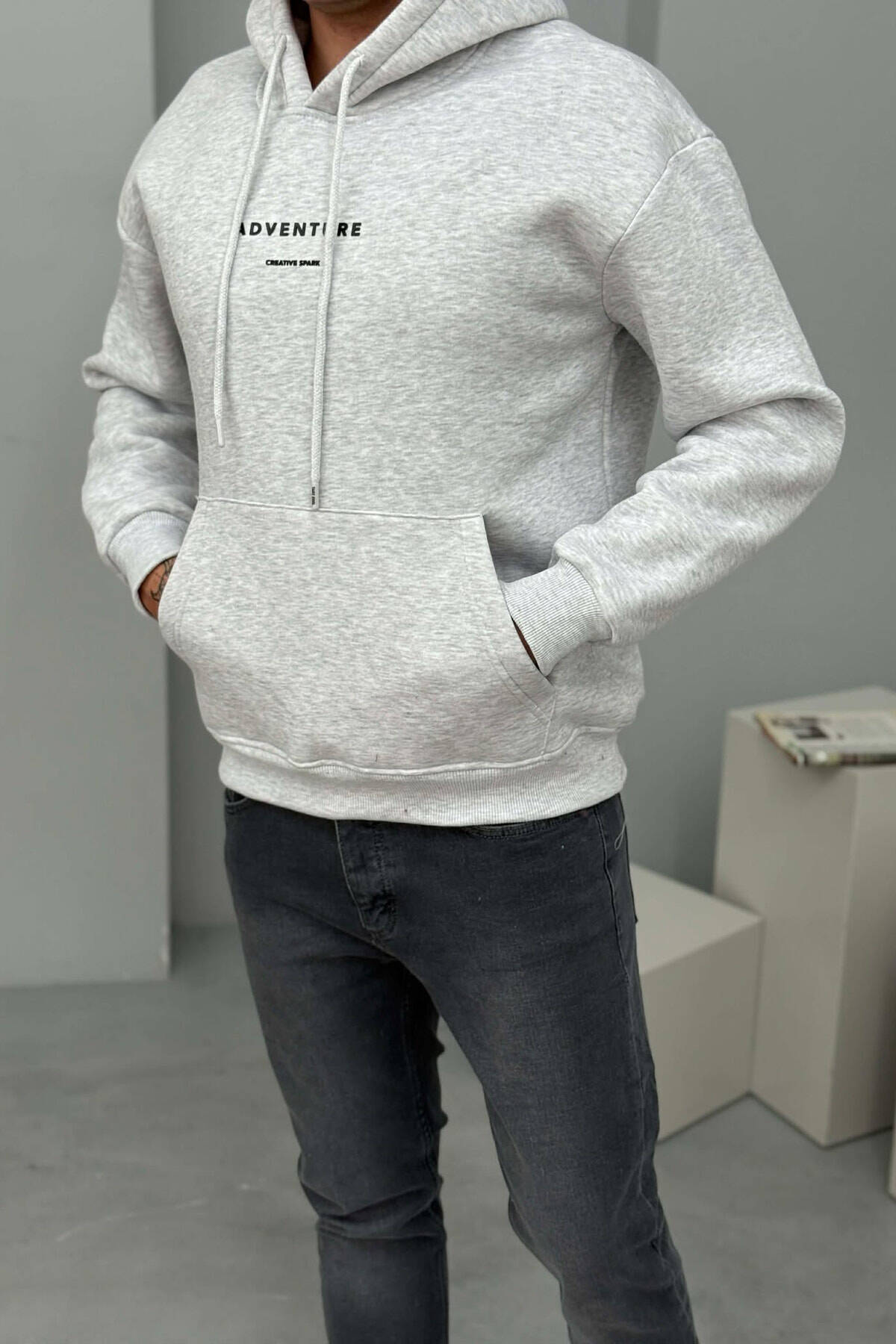 SIMPLE FRONT WRITTINGS FLUFFY MEN HOODIE LIGHT GREY/GZ