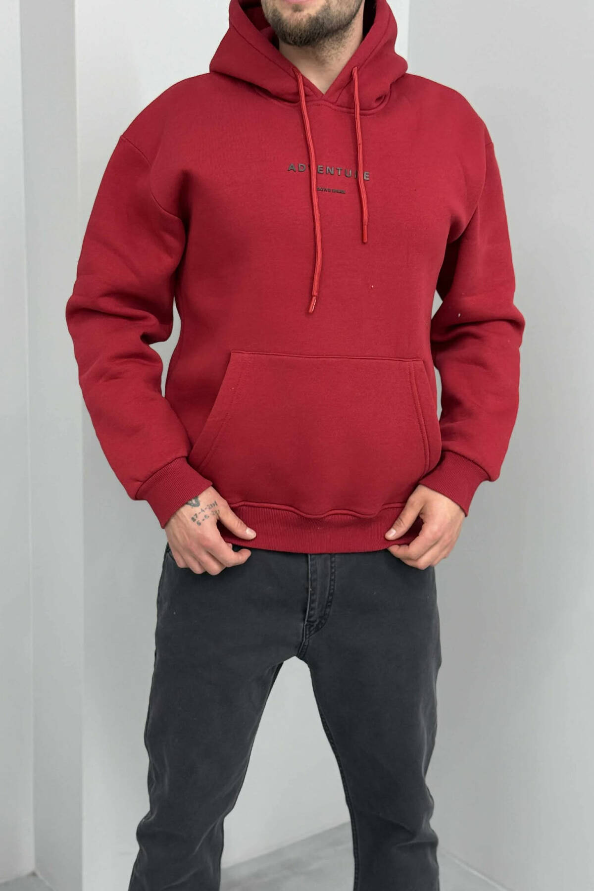 SIMPLE FRONT WRITTINGS FLUFFY MEN HOODIE RED/E KUQE