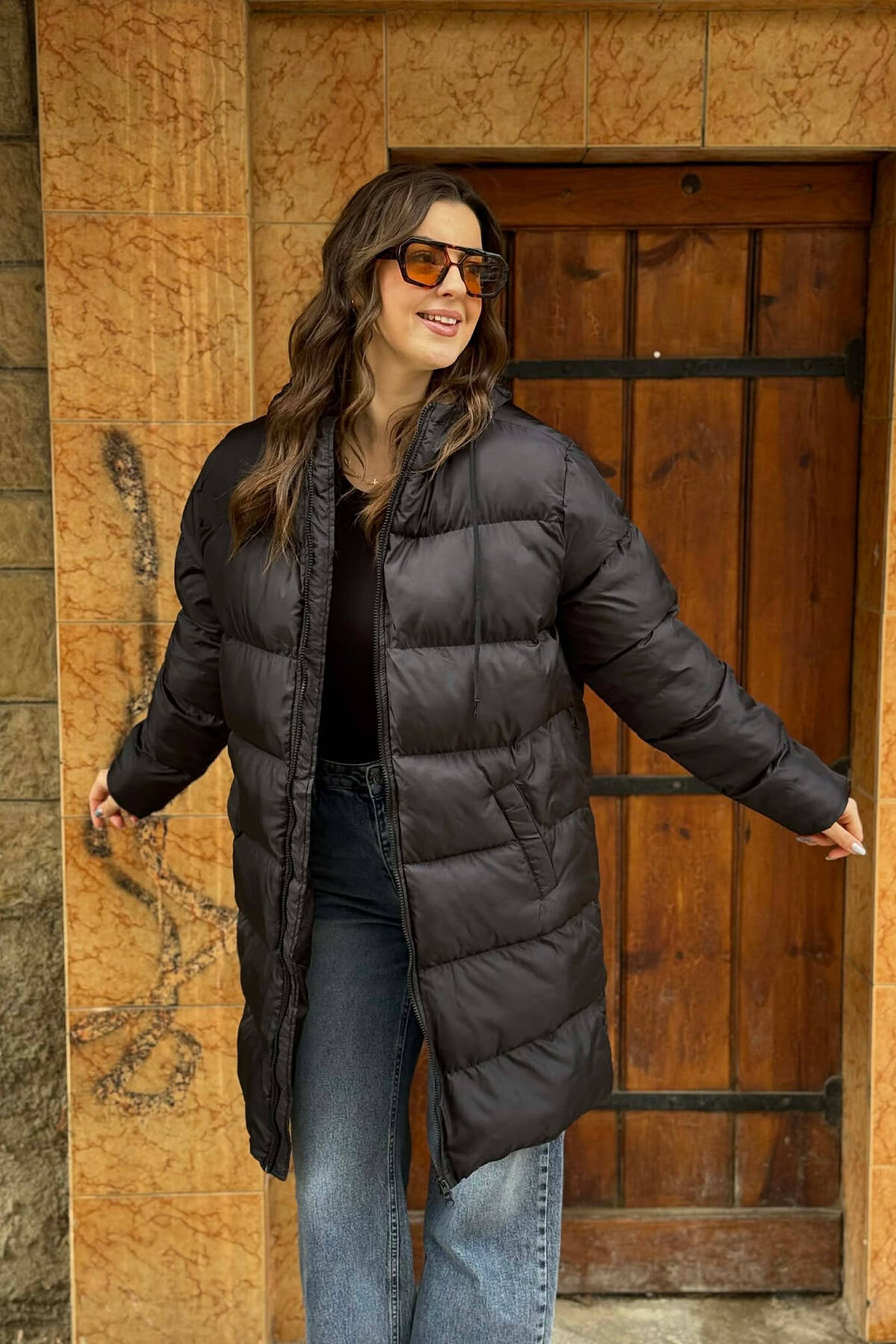 SIMPLE HOODED WOMEN PUFFER JACKET BLACK/ E ZEZE