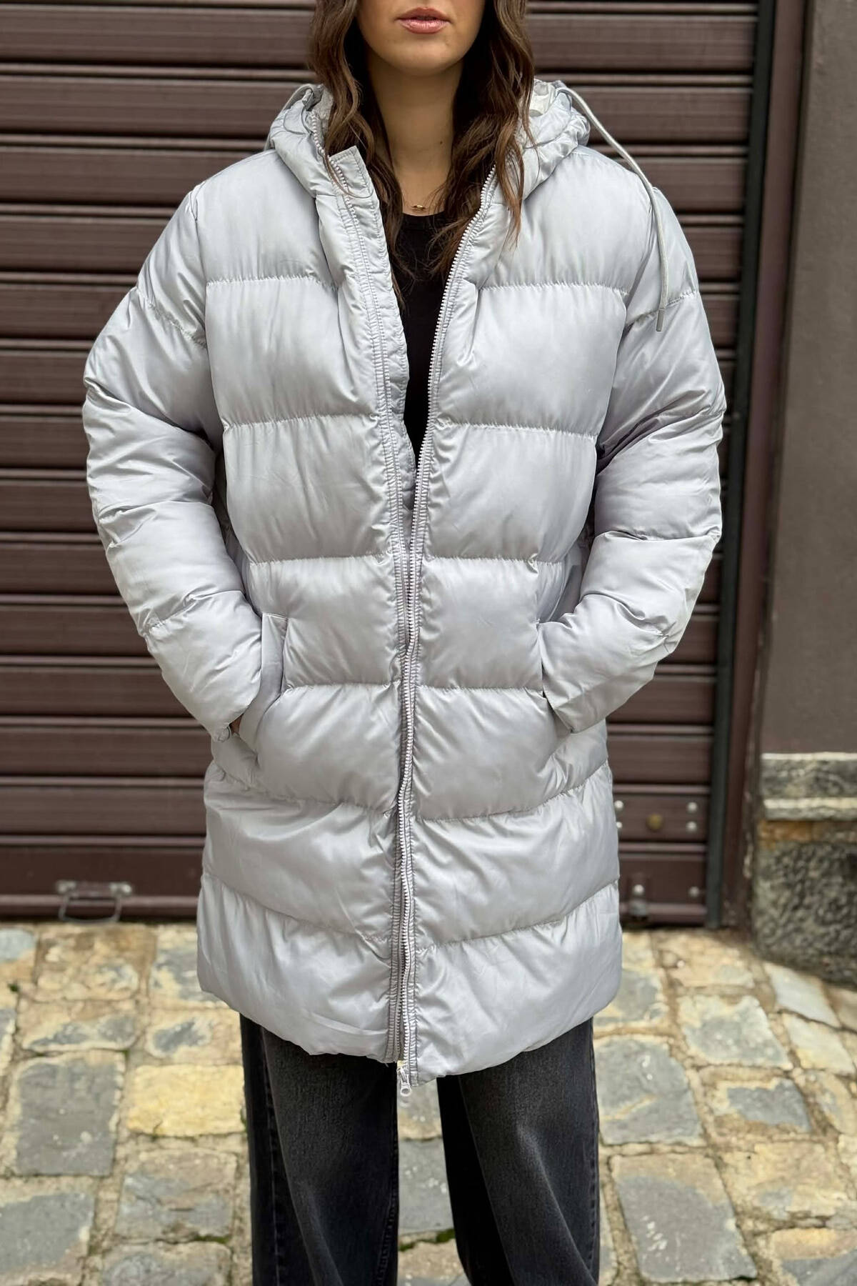 SIMPLE HOODED WOMEN PUFFER JACKET LIGHT GREY/GZ