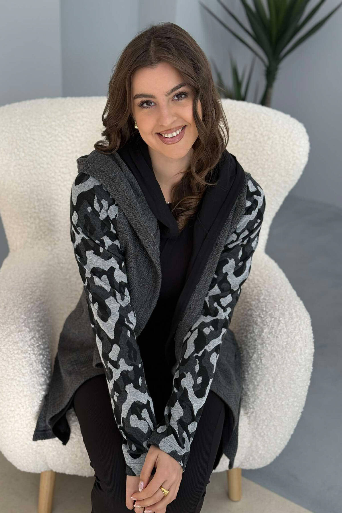 SIMPLE HOODED WOMEN CARDIGAN GREY/GRI