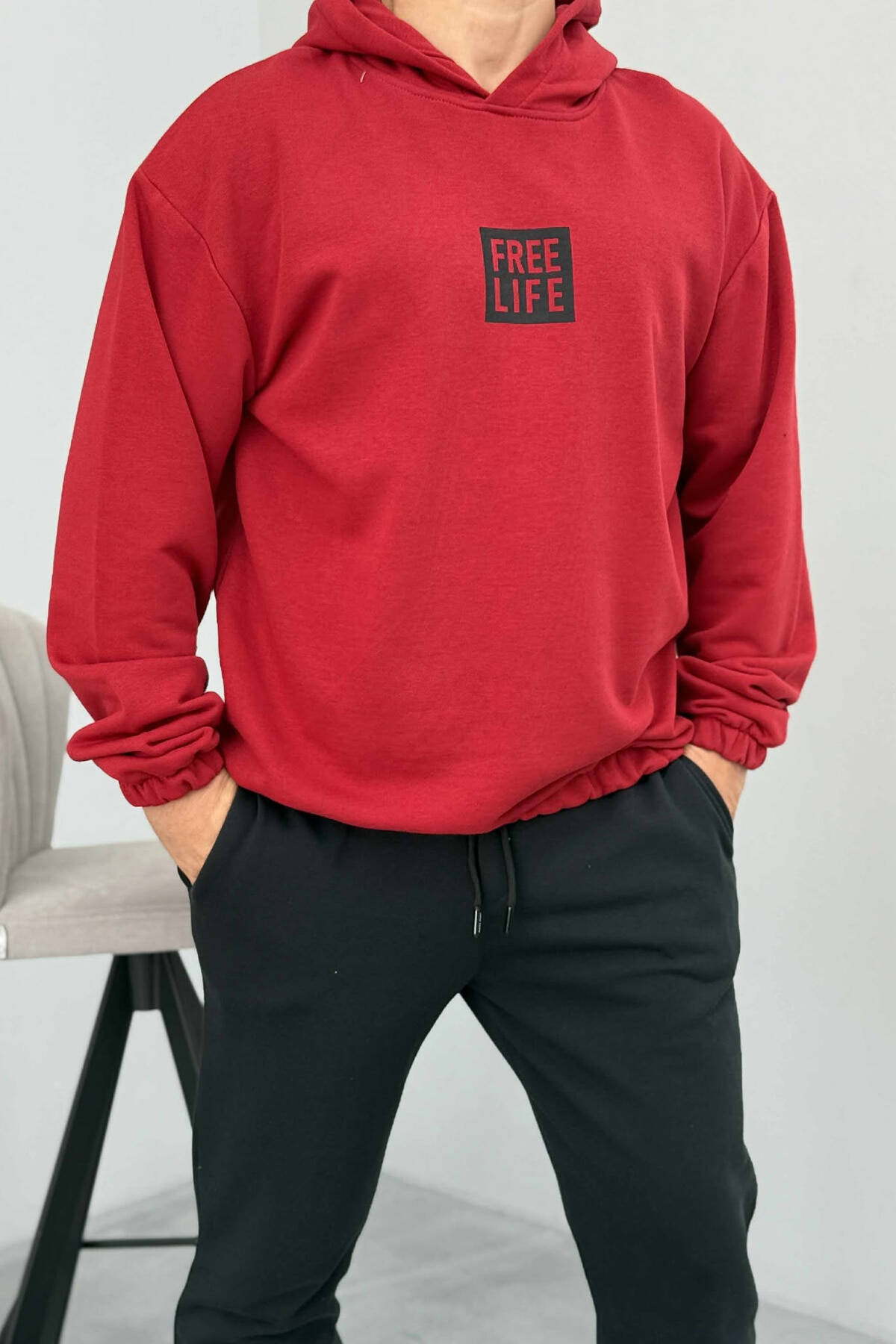 SIMPLE HOODIE+JOGGERS MEN SET BLACK-BURGUNDY/ZEVI
