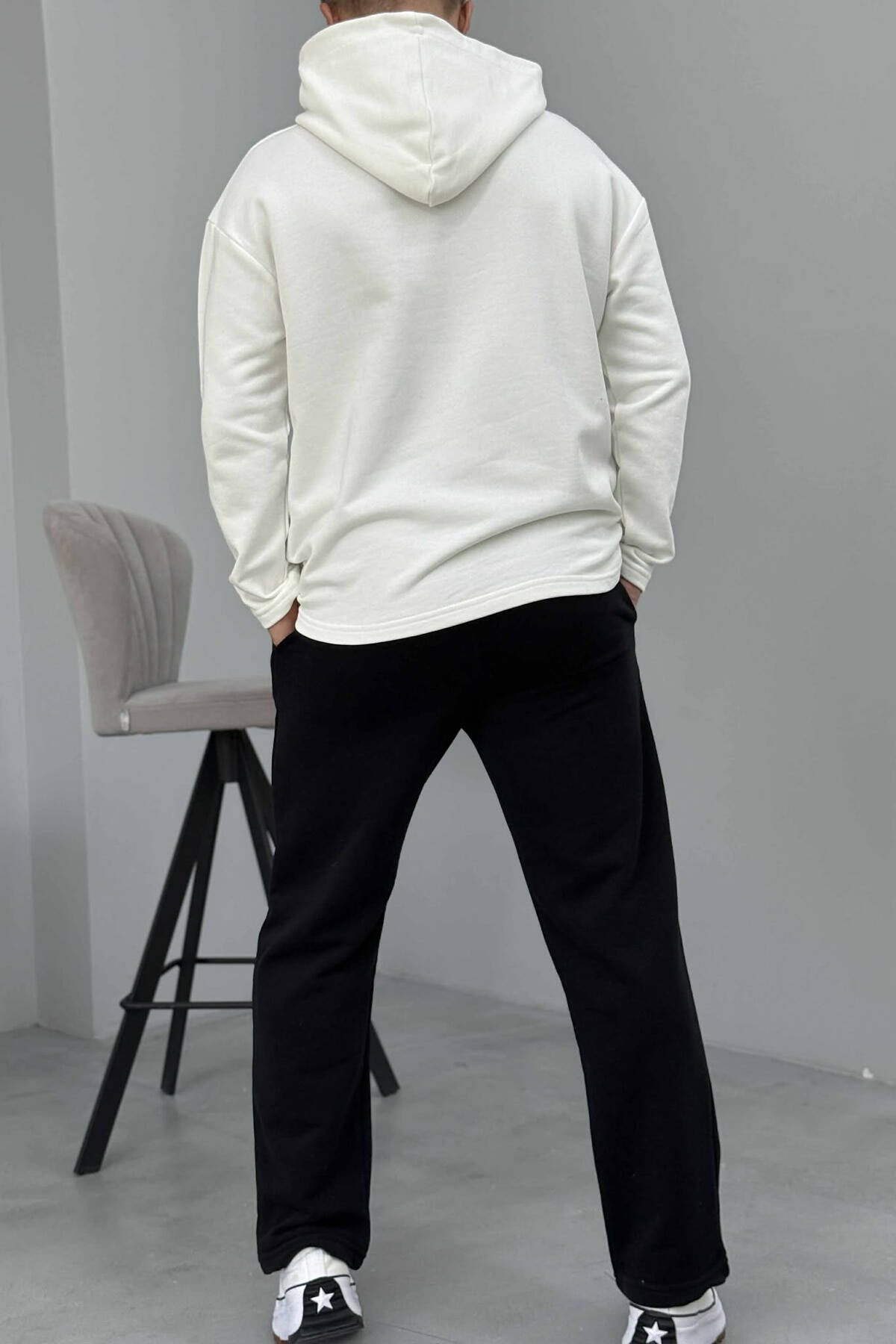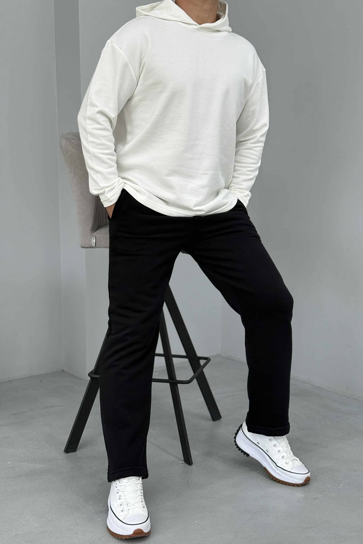 SET NJËNGJYRËSH I THJESHTË HOODIE+TUTA PËR MESHKUJ NË NGJYRËN E ZEZË+E BARDHË