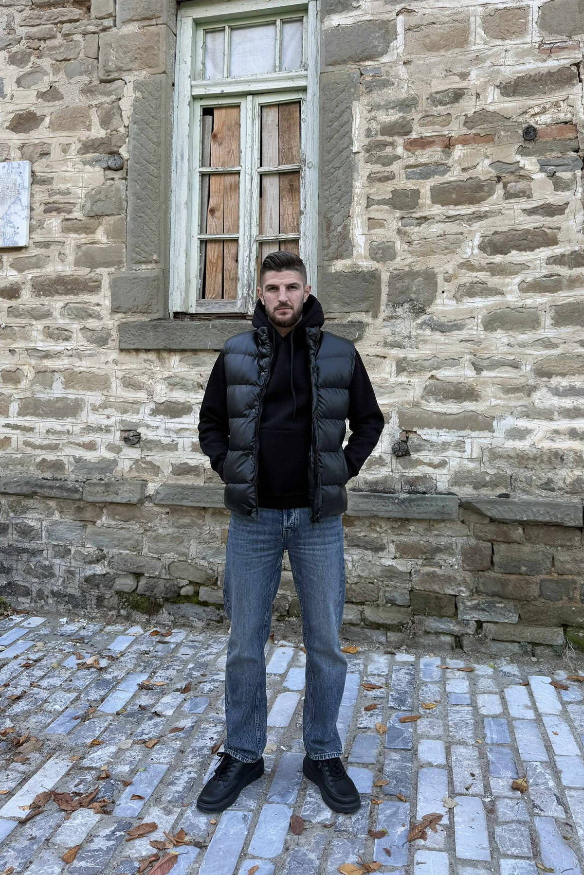SIMPLE LEATHER PUFFER MEN VEST BLACK/ E ZEZE