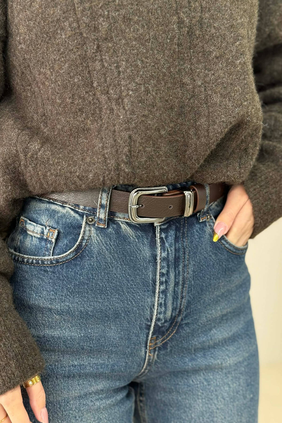 ONE COLOR LEATHER SIMPLE BUCKLE WOMEN BELT BROWN/KAFE