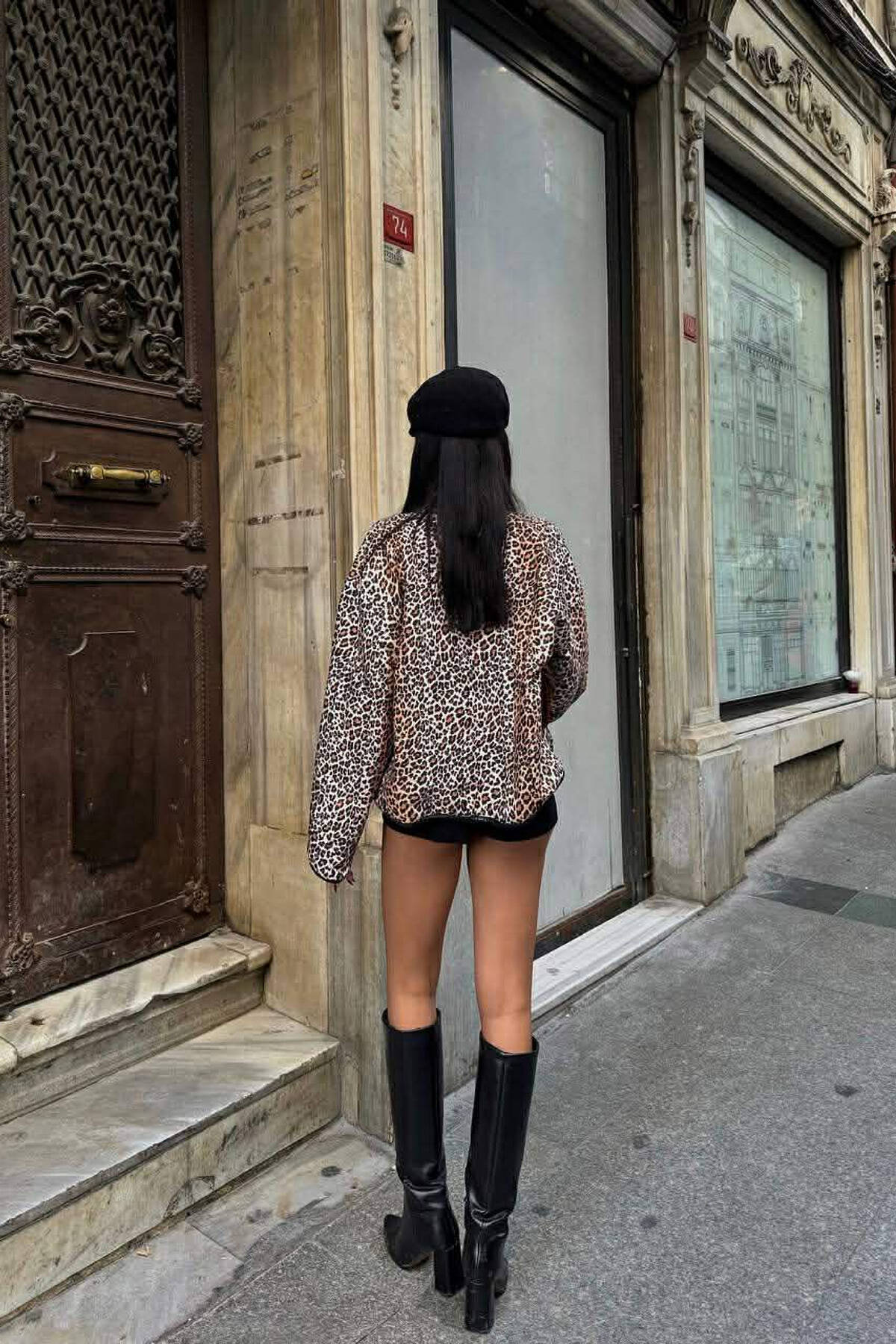SIMPLE LEO DESIGN BUTTONED WOMEN JACKET LEO/LEOPARD