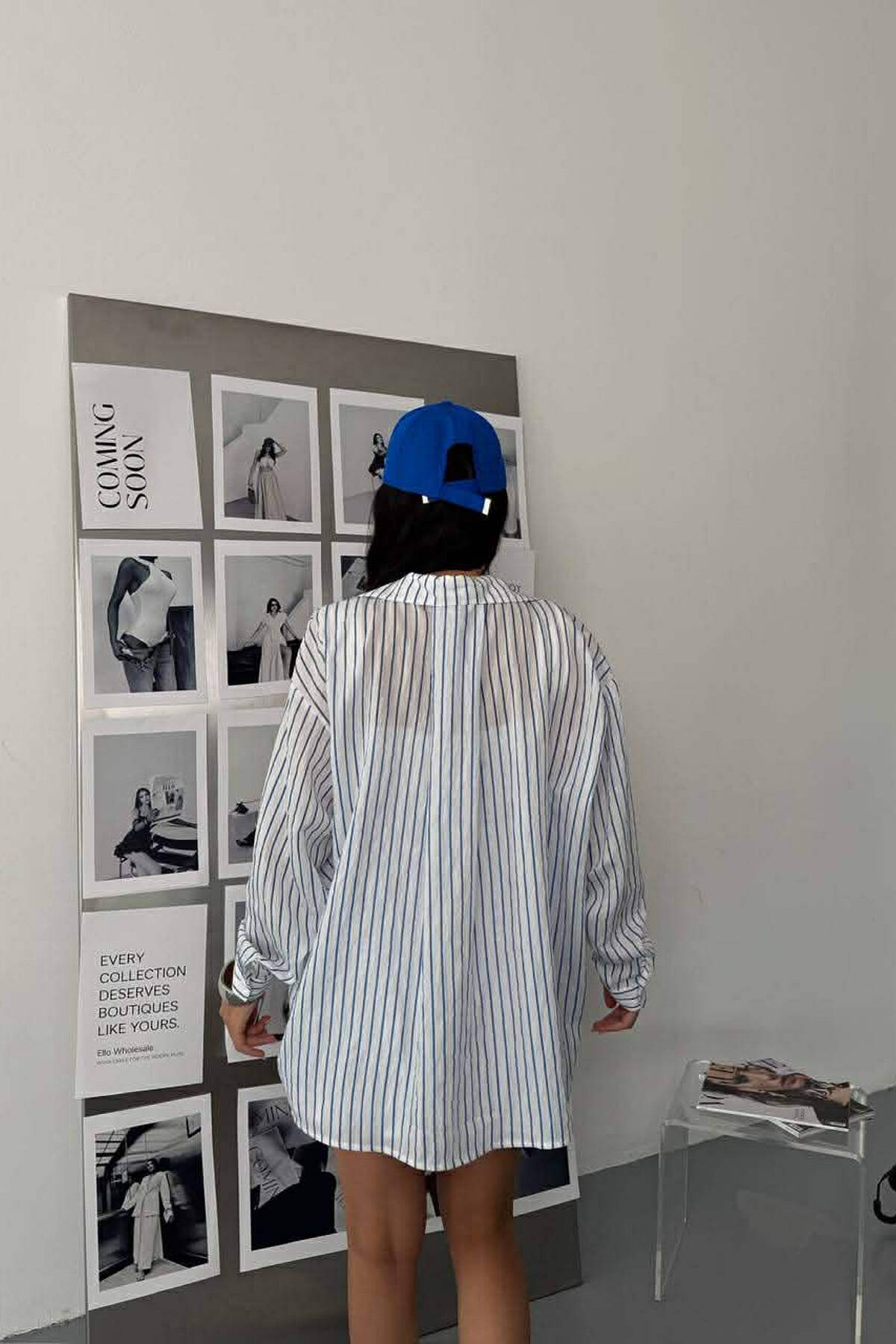 SIMPLE LINES PATTERN FRONT POCKET WOMEN SHIRT BLUE/BLU