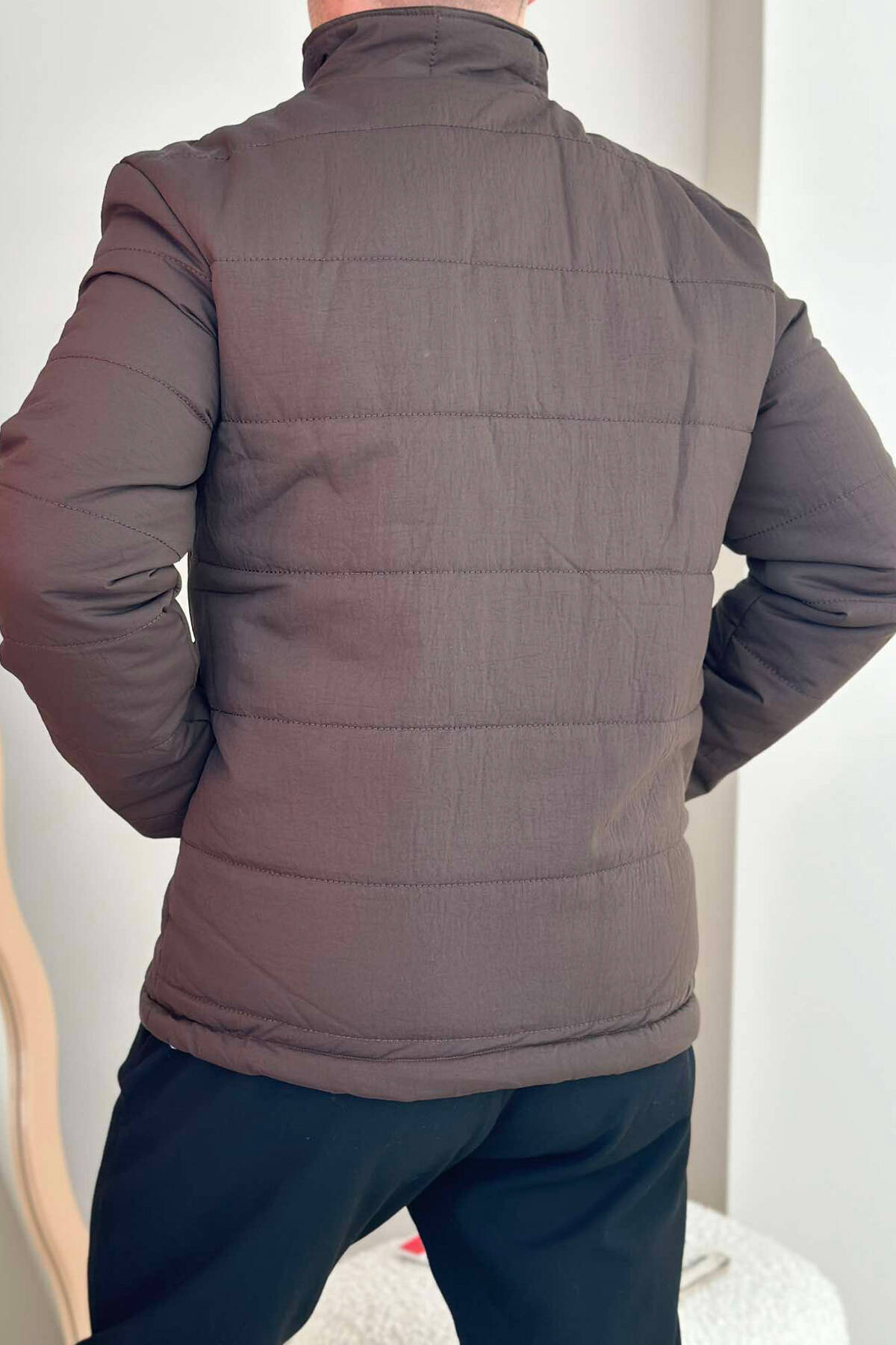 SIMPLE MEN PUFFER JACKET IN DARK BROWN COLOR