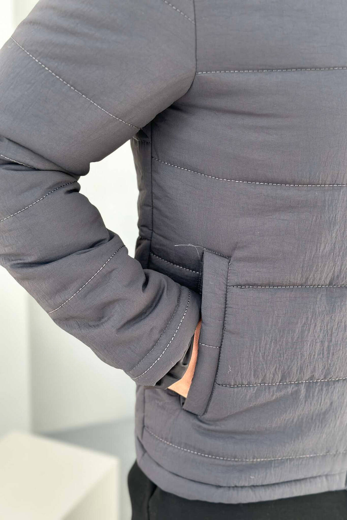 ONE COLOR FLUFFY SIDE POCKET MEN PUFFER JACKET DARK GREY/GEE