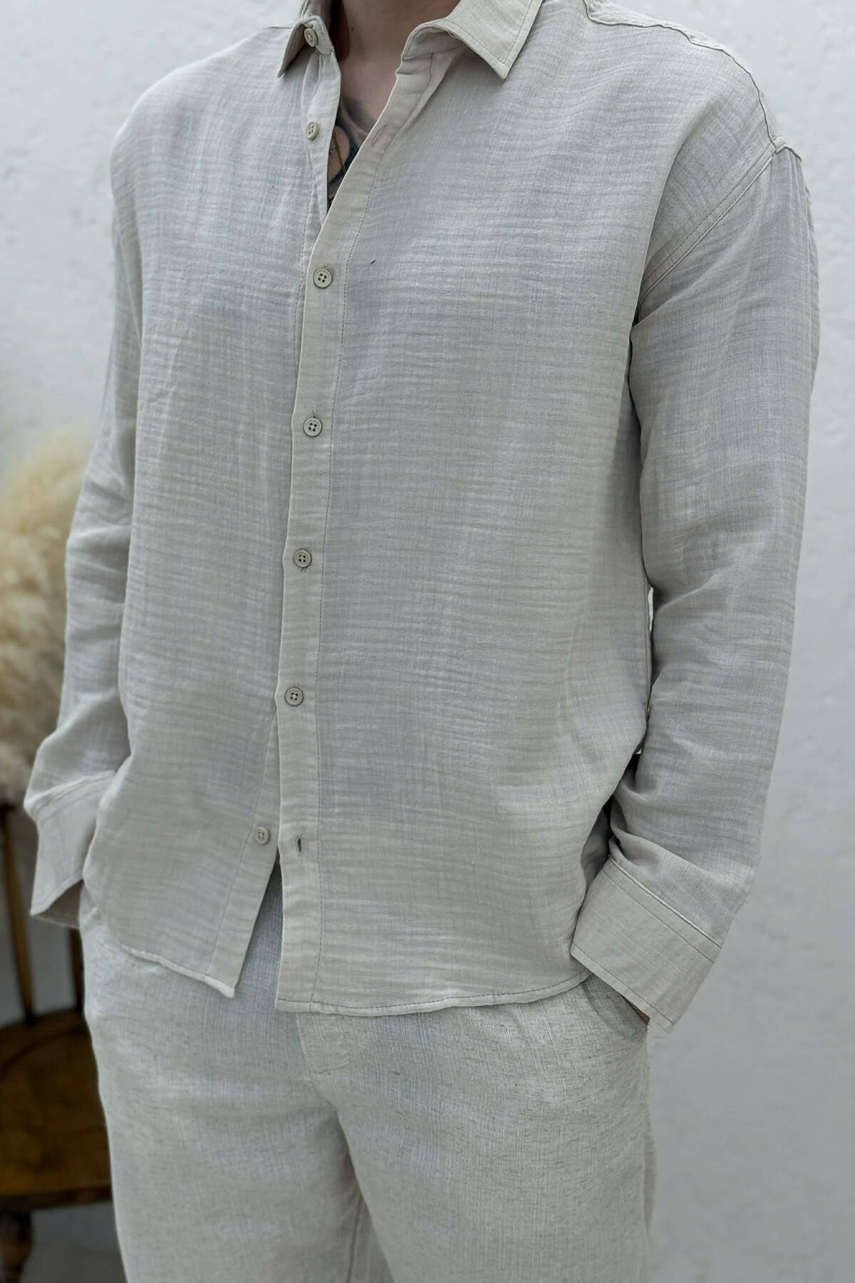 SIMPLE LONG SLEEVE MEN SHIRT LIGHT BEIGE/BZHZB