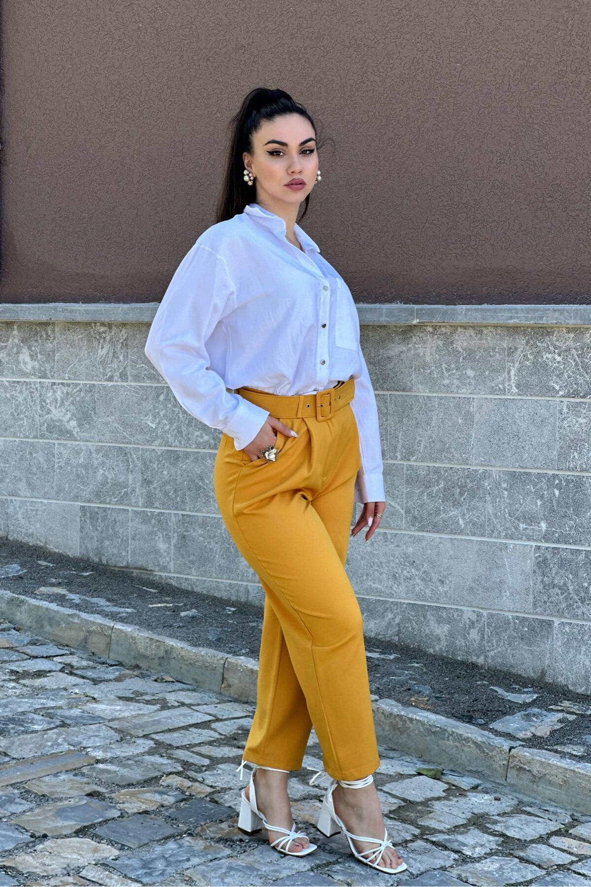 SIMPLE ON COLOR BELT WOMAN TROUSERS MUSTARD/MUSTARDE