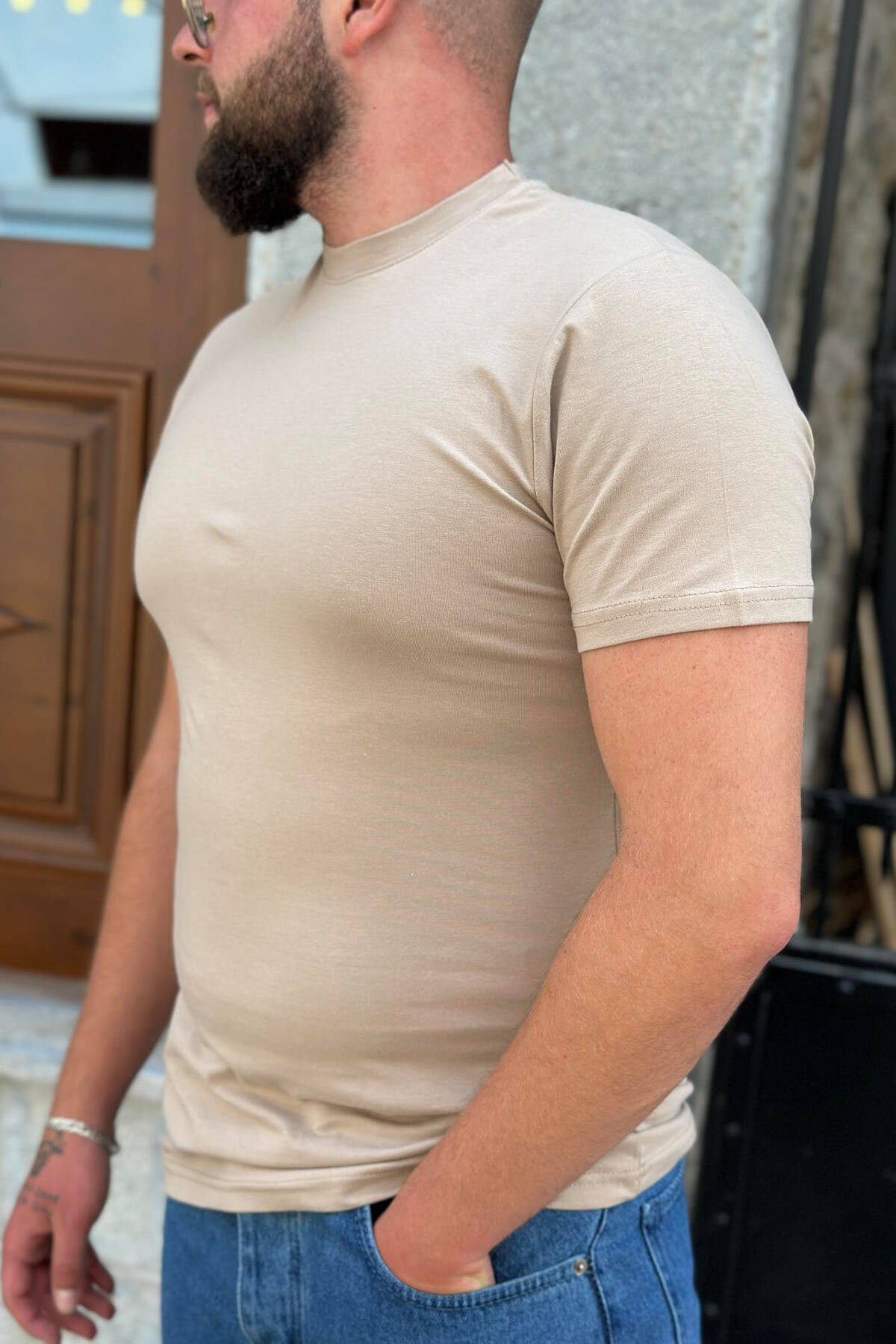 SIMPLE ONE COLOR COTTON MEN T-SHIRT BEIGE/BEZHE