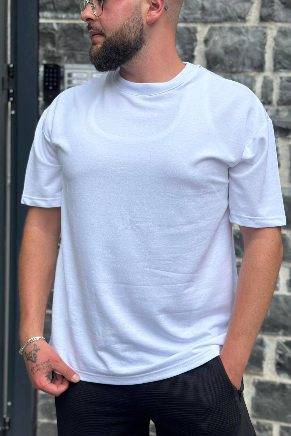 SIMPLE ONE COLOR COTTON MEN T-SHIRT WHITE-E BARDHE