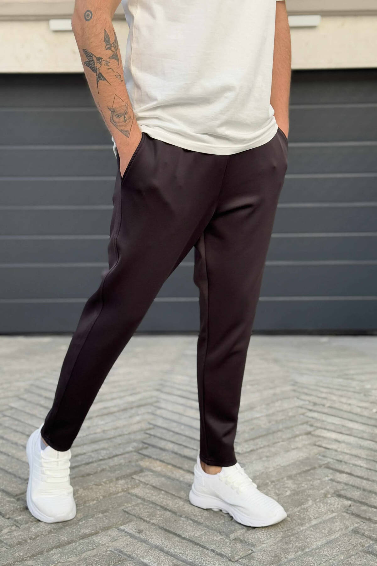 ONE COLOR ELASTIC MEN SWEATPANTS BROWN/KAFE
