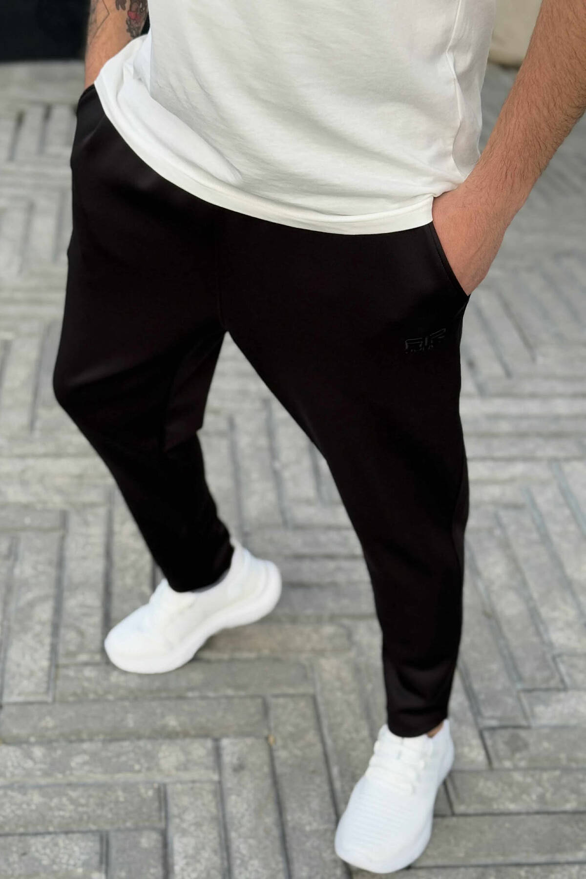 SIMPLE ONE COLOR ELASTIC MEN SWEATPANTS BLACK/ E ZEZE