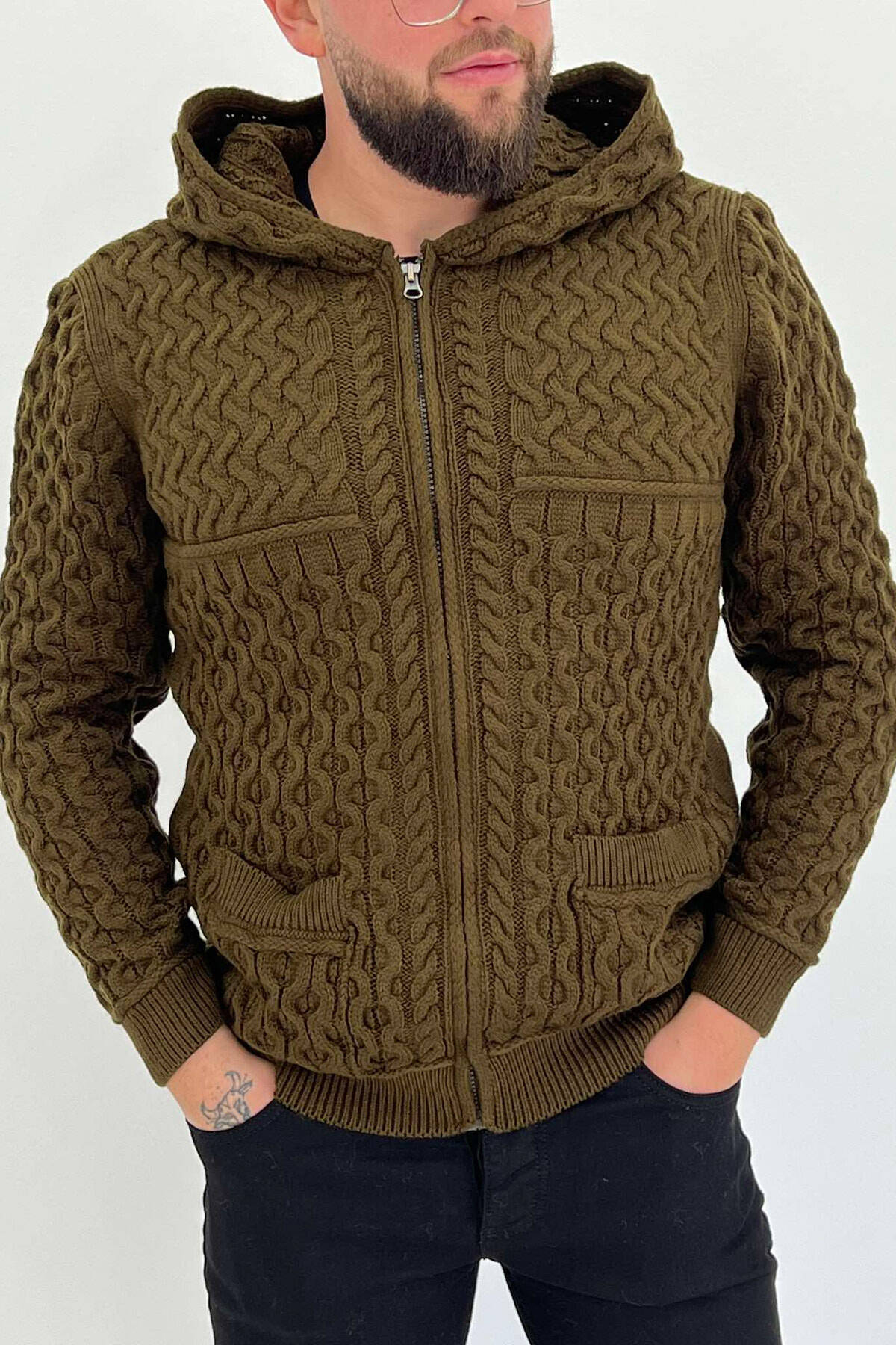 SIMPLE ONE COLOR MEN CARDIGANS DARK GREEN/JEE