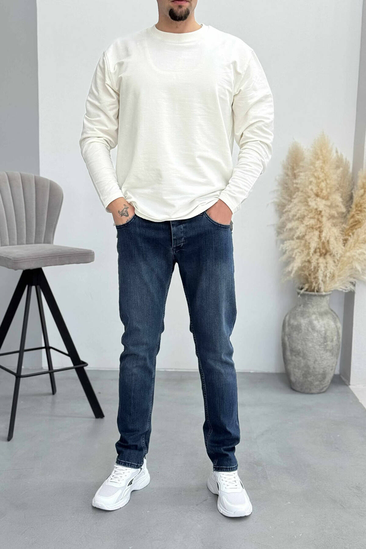 ONE COLOR STRETCHY MEN JEANS DARK BLUE/BEE