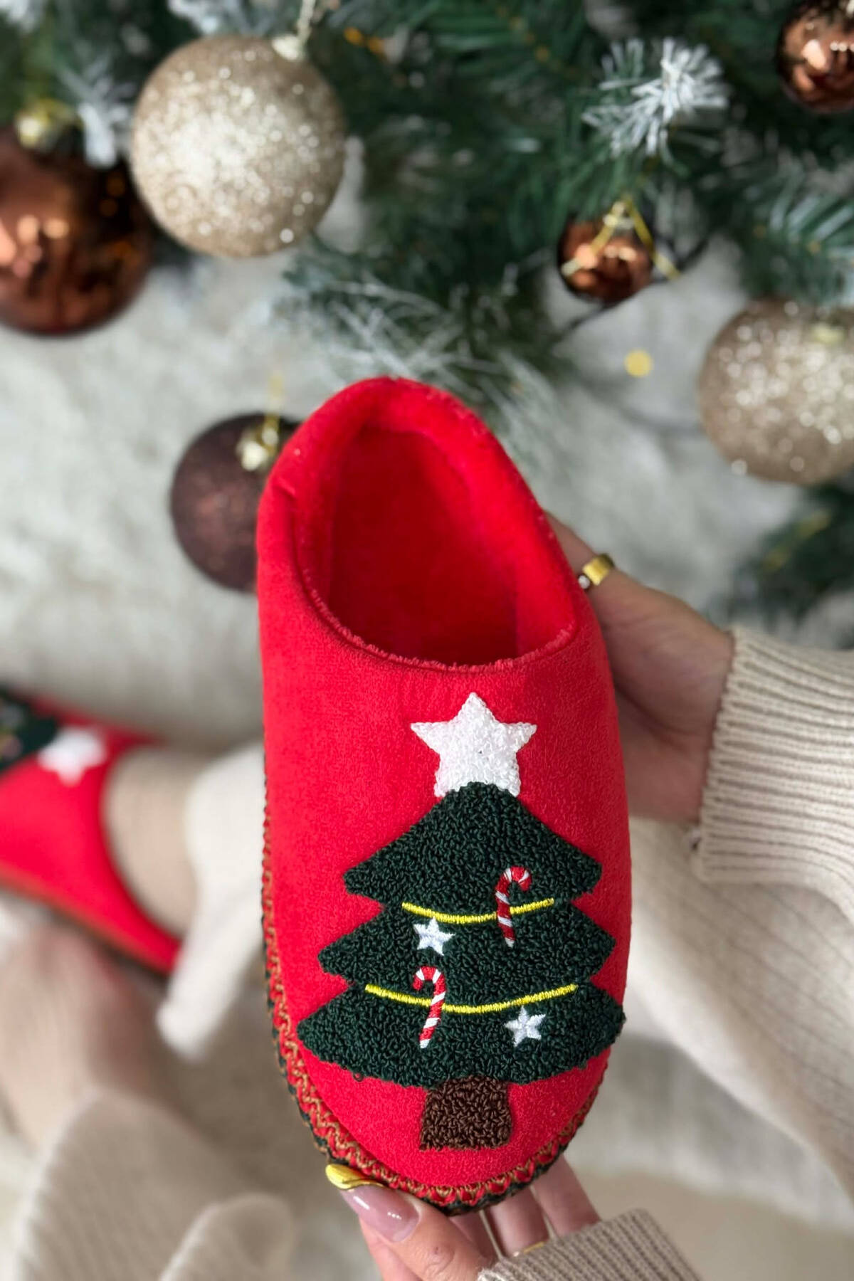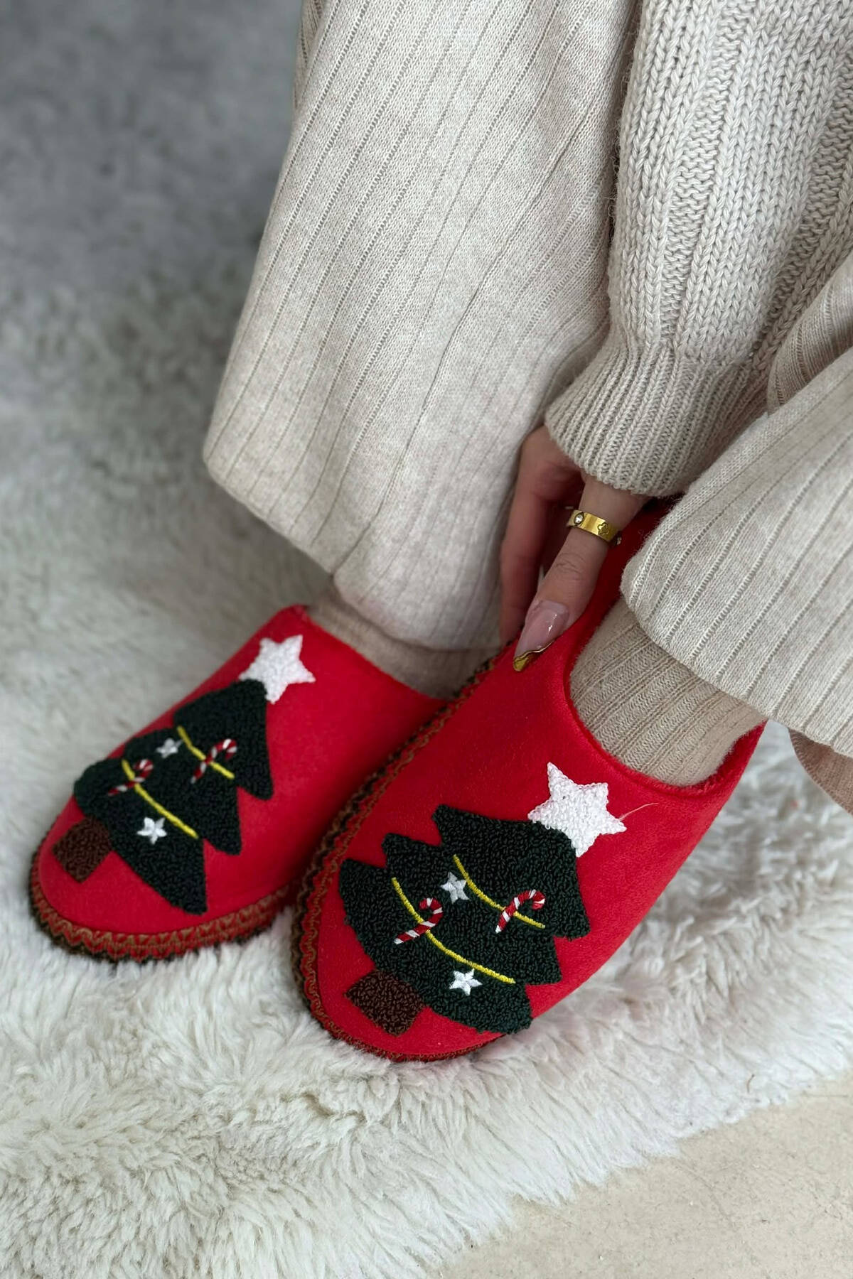 ONE COLOR CHRISTMAS TREE WOMAN SLIPPERS RED/E KUQE