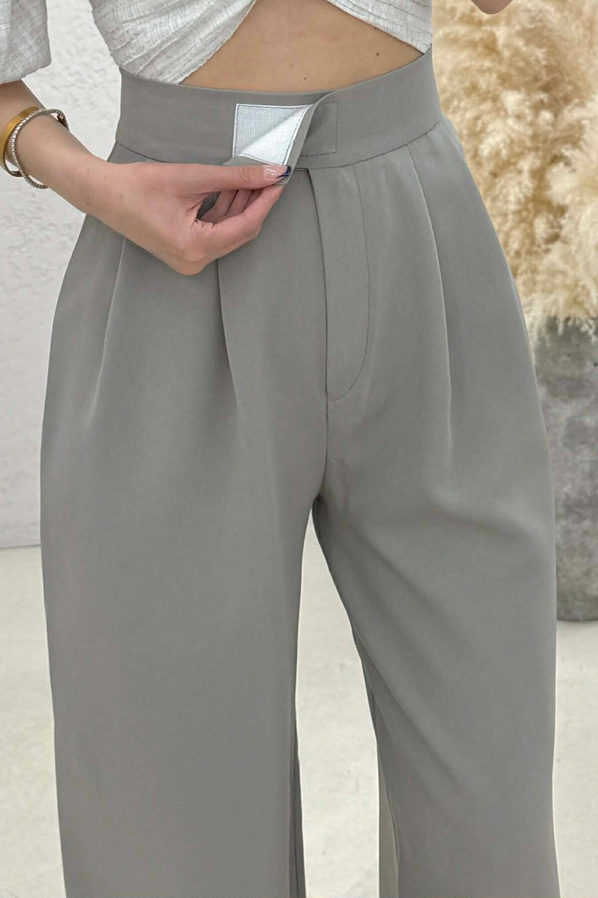 ONE COLOR BELT DETAIL WOMAN TROUSERS DARK GREY/GEE