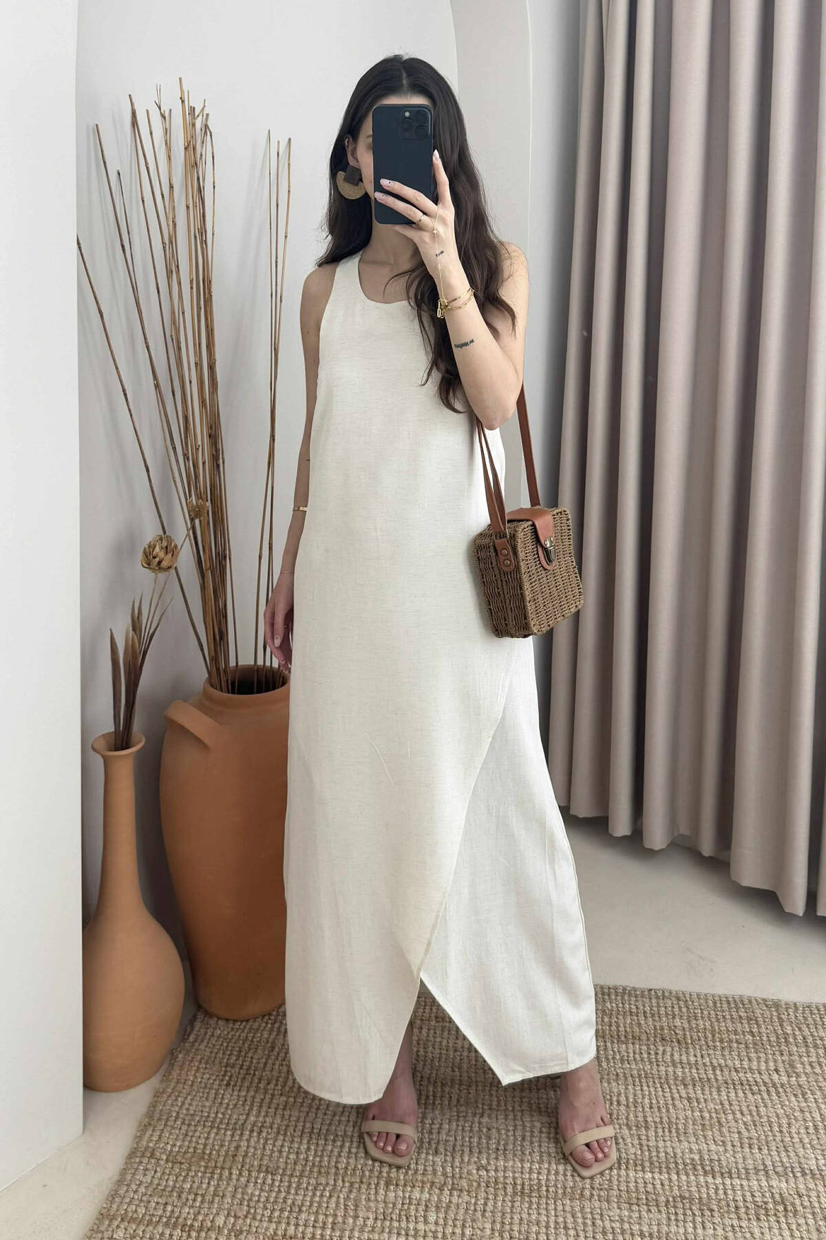 SIMPLE ONE COLOR WOMEN DRESS CREAM/KREM