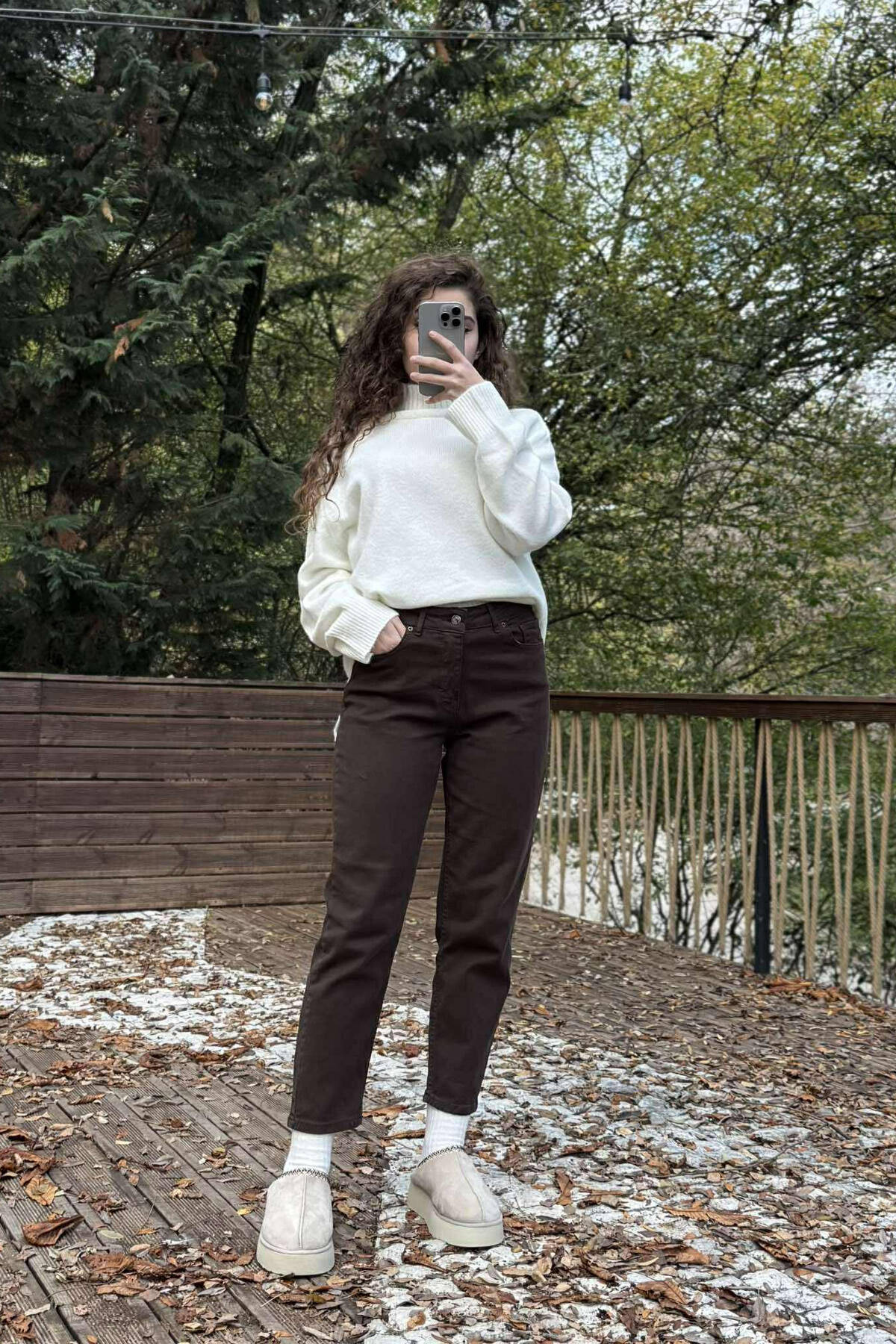 SIMPLE ONE COLOR WOMEN JEANS BROWN/KAFE