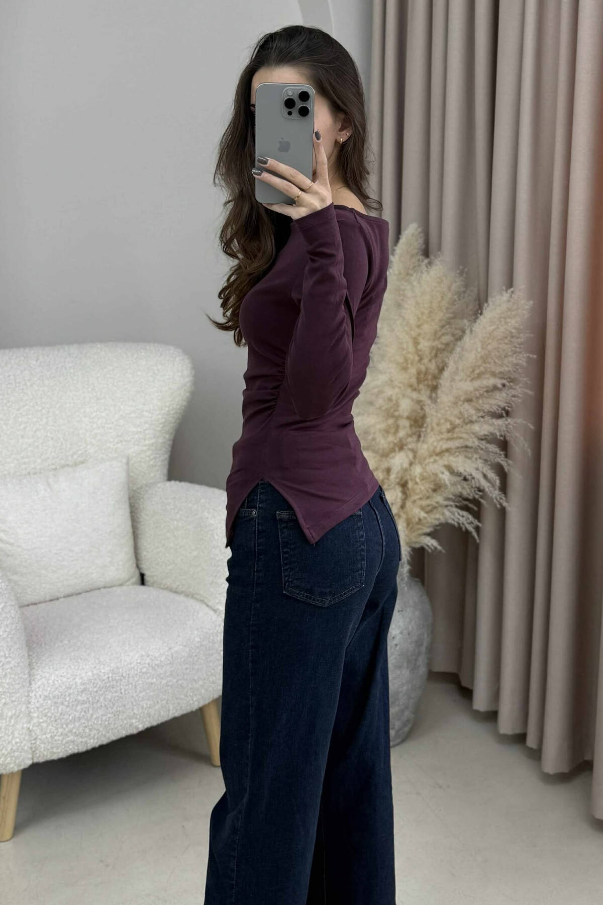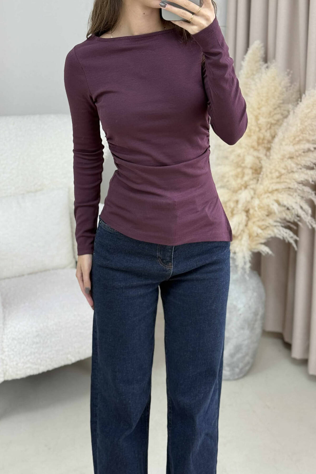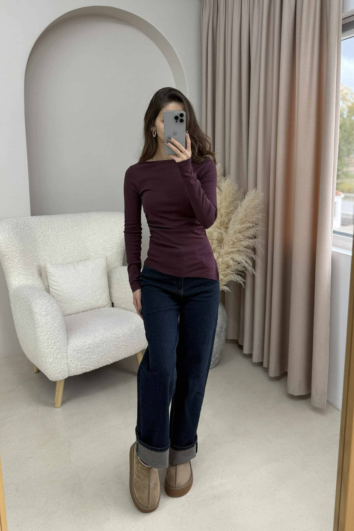 BLUZË E THJESHTË NJË NGJYRËSHE PËR FEMRA NË NGJYRË VISHNJË TË ERRËT