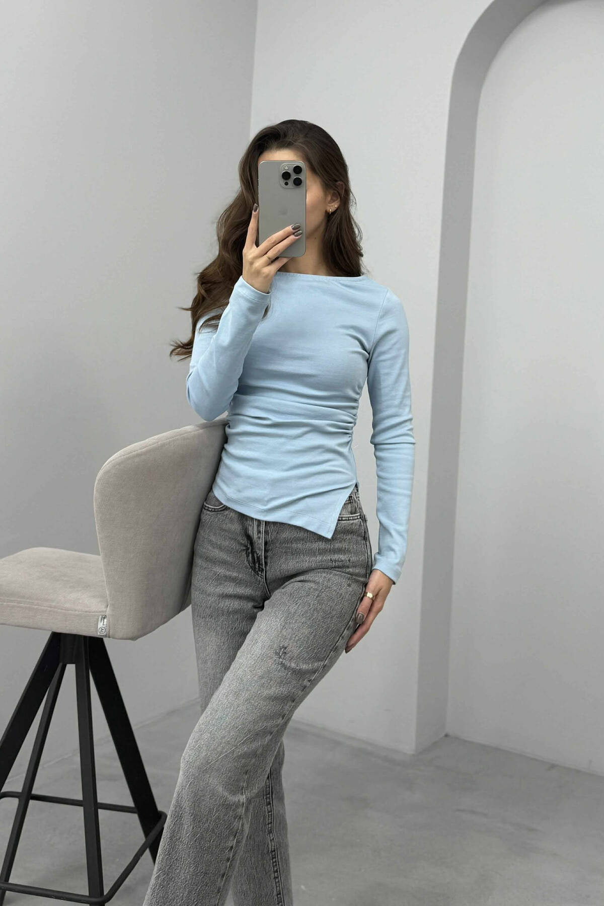 BLUZË E THJESHTË NJË NGJYRËSHE PËR FEMRA NË NGJYRË BLU TË ZBARDHUR