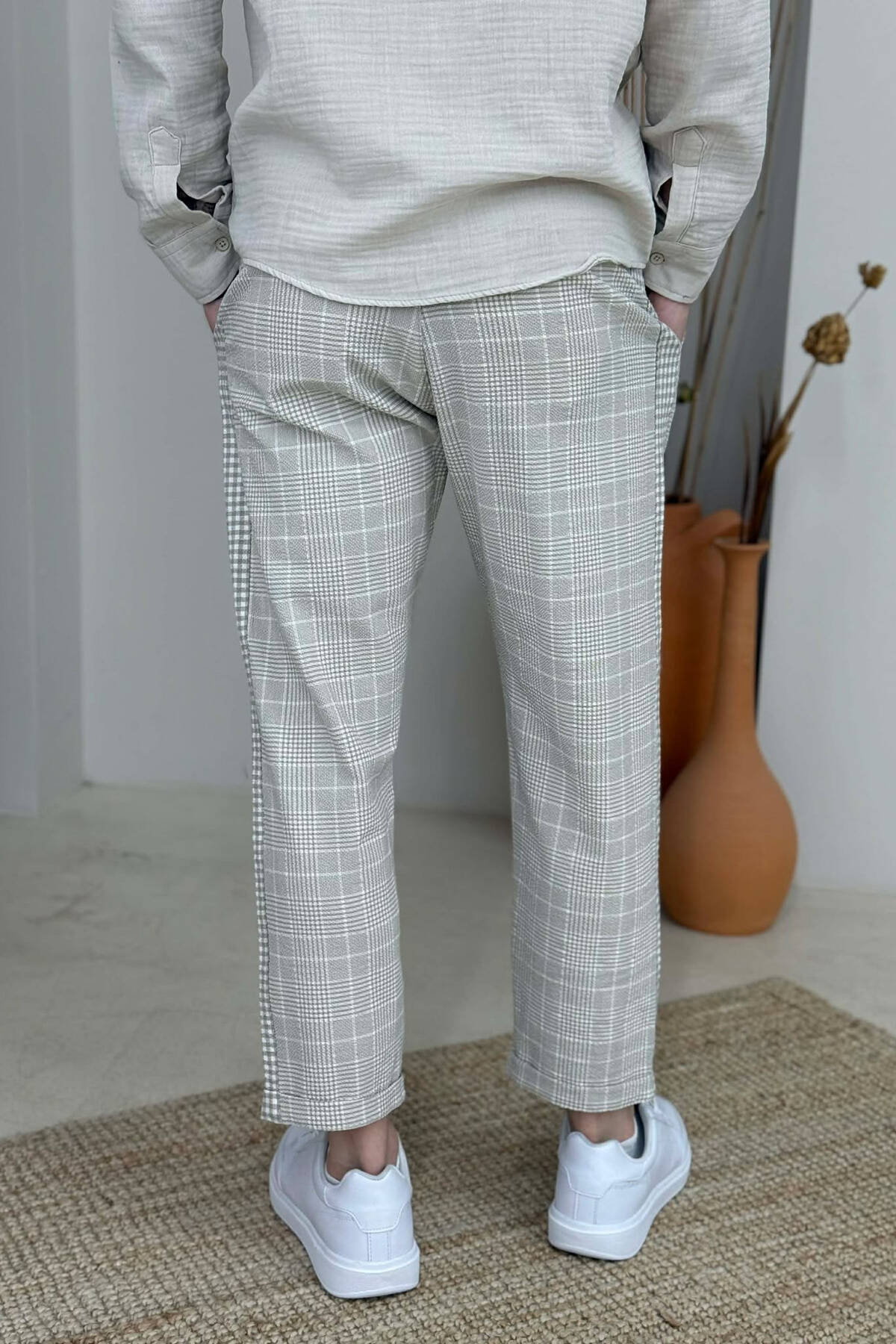 SIMPLE PLAID MEN PANTS BEIGE/BEZHE