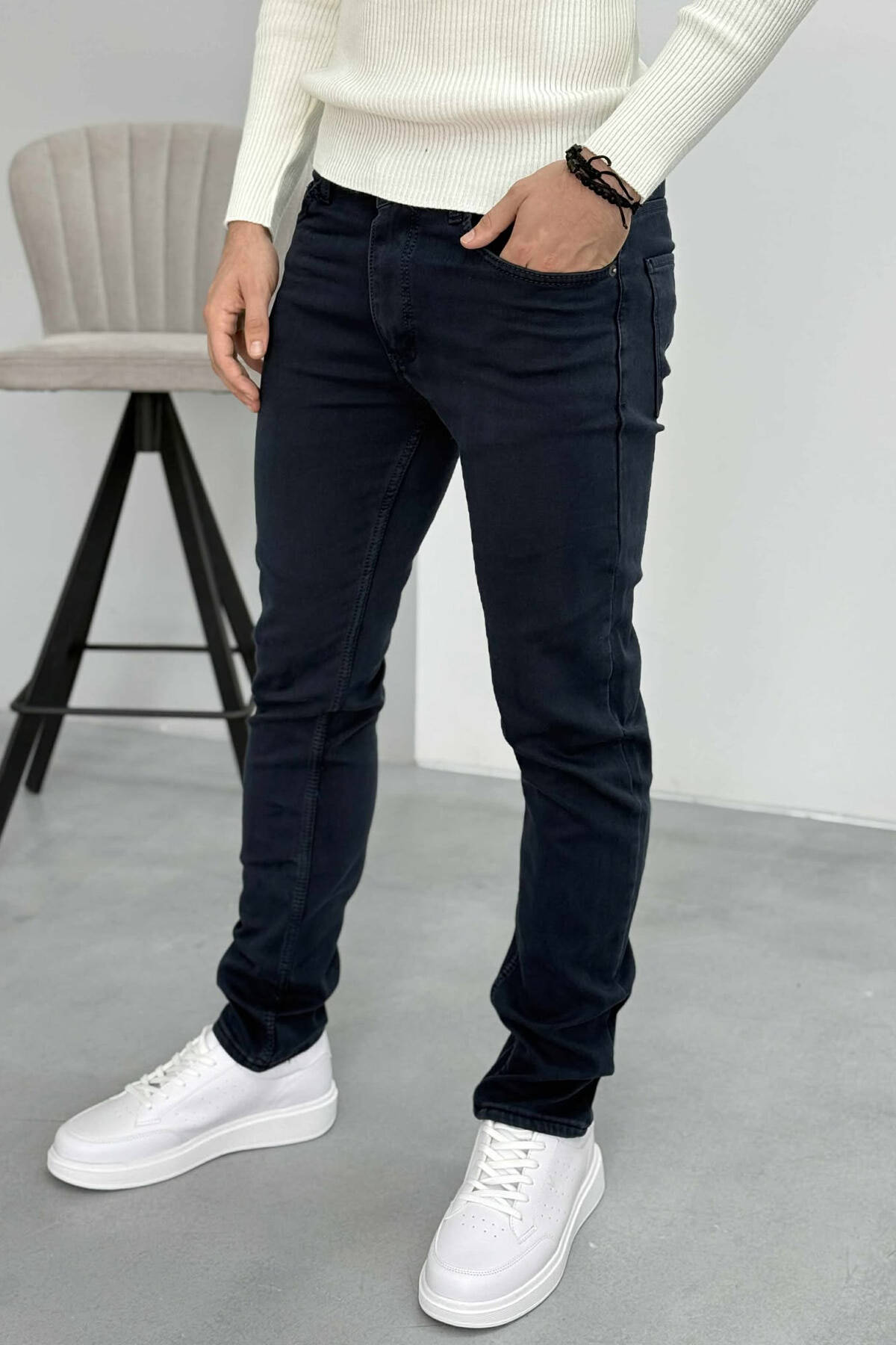 ONE COLOR STRETCHY MEN JEANS DARK BLUE/BEE