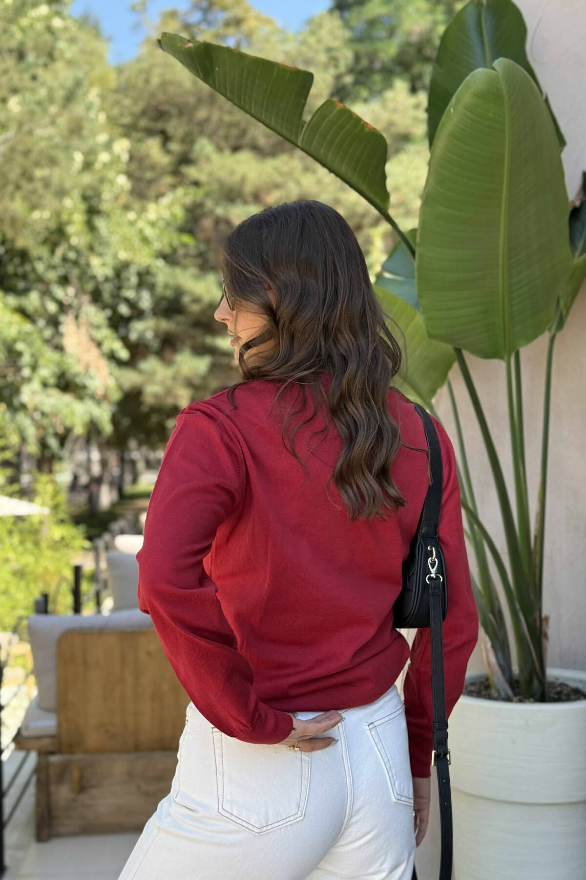 SIMPLE ROUND NECK WOMEN SWEATER BURGUNDY/VISHNJE