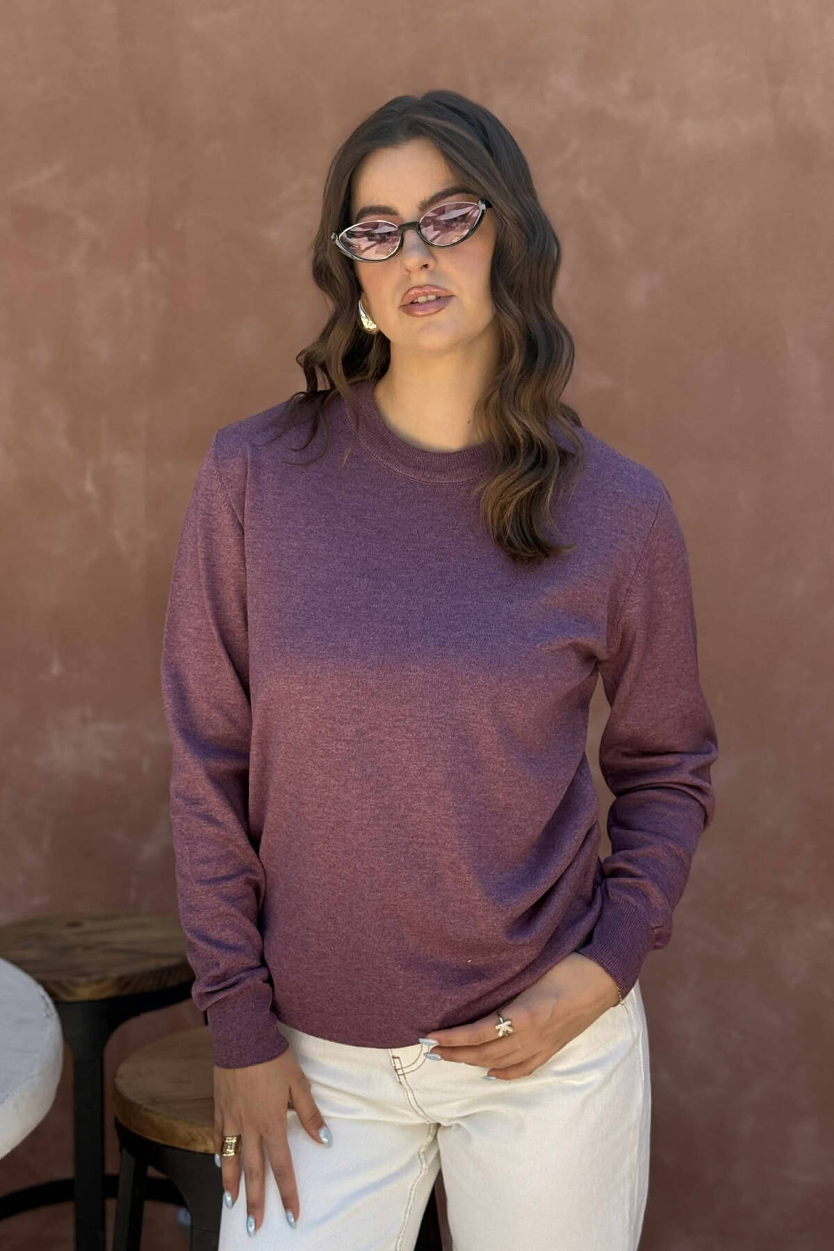 SIMPLE ROUND NECK WOMEN SWEATER DARK PURPLE/LEJLA ERRET