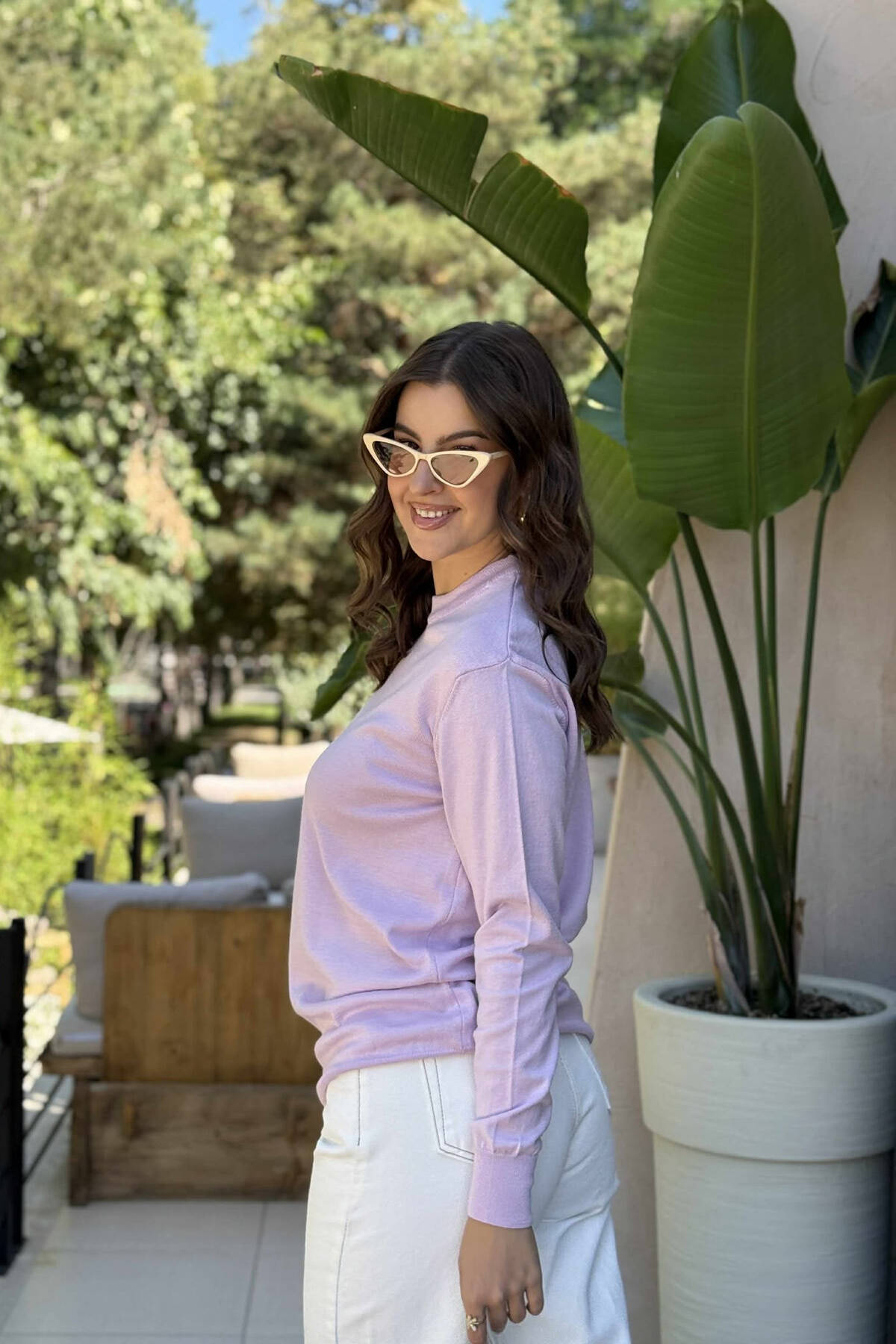 SIMPLE ROUND NECK WOMEN SWEATER LIGHT PURPLE/LEZB