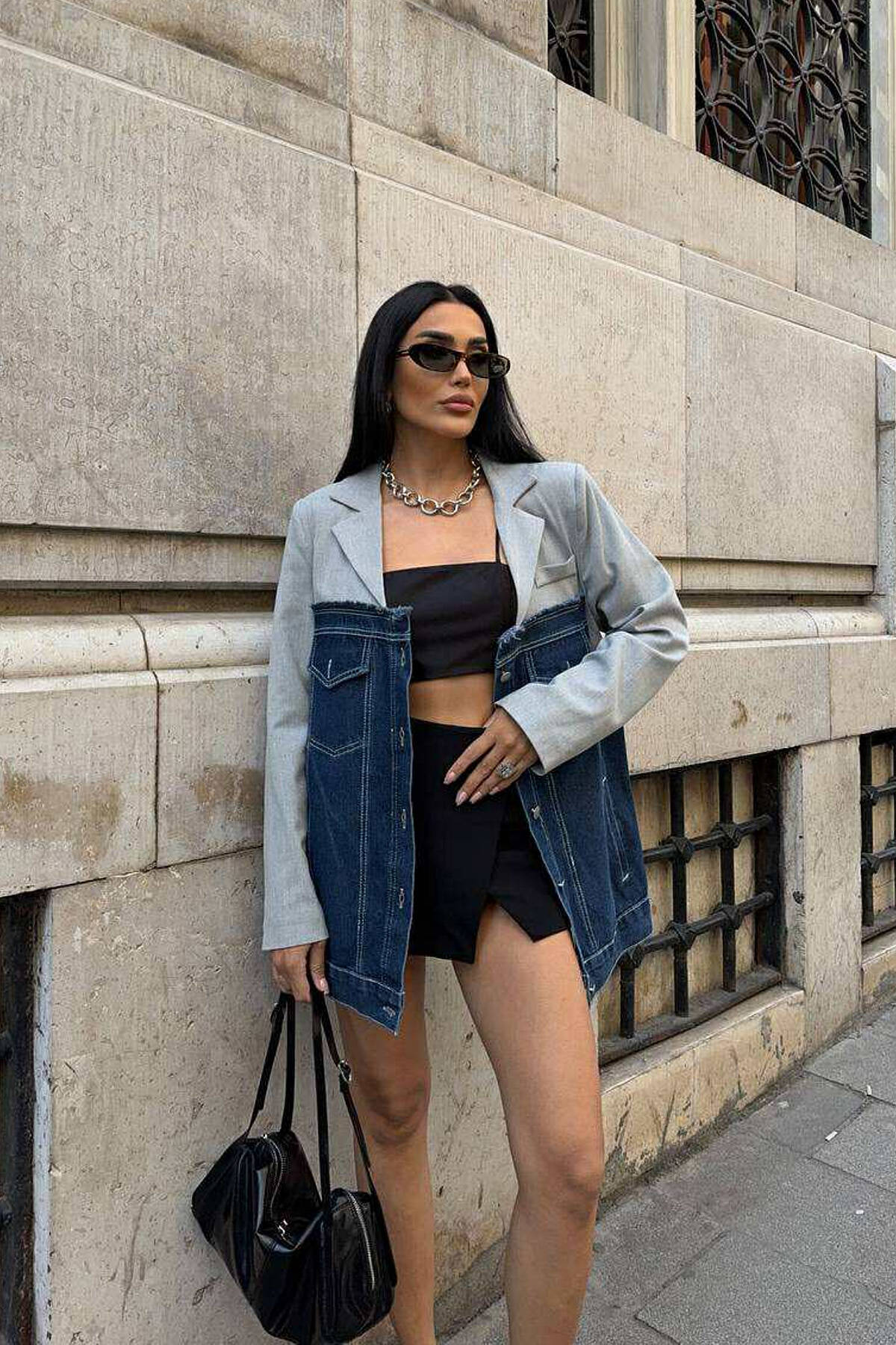 SIMPLE SEMI DENIM DESIGN WOMEN JACKET GREY/GRI