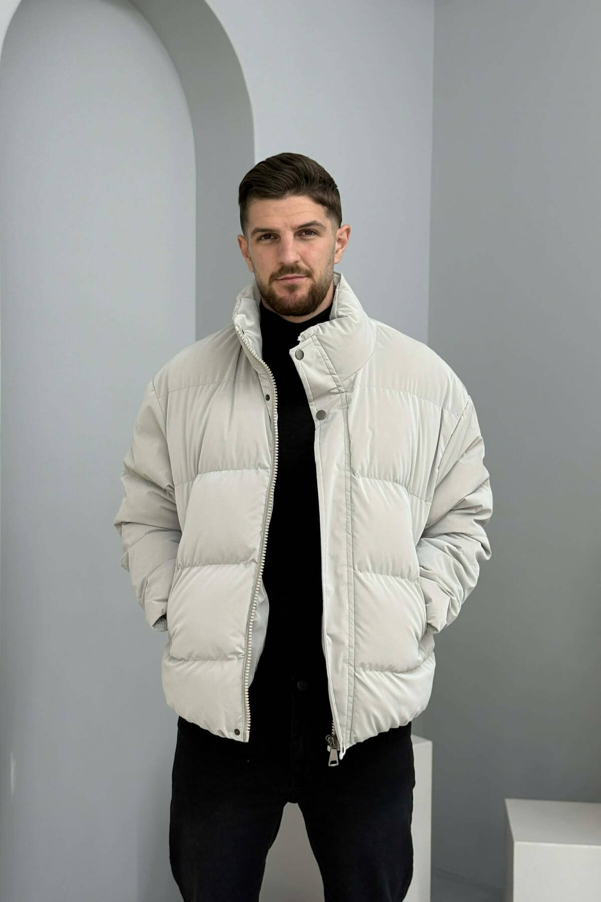 SIMPLE SHORT MEN PUFFER JACKET BEIGE/BEZHE