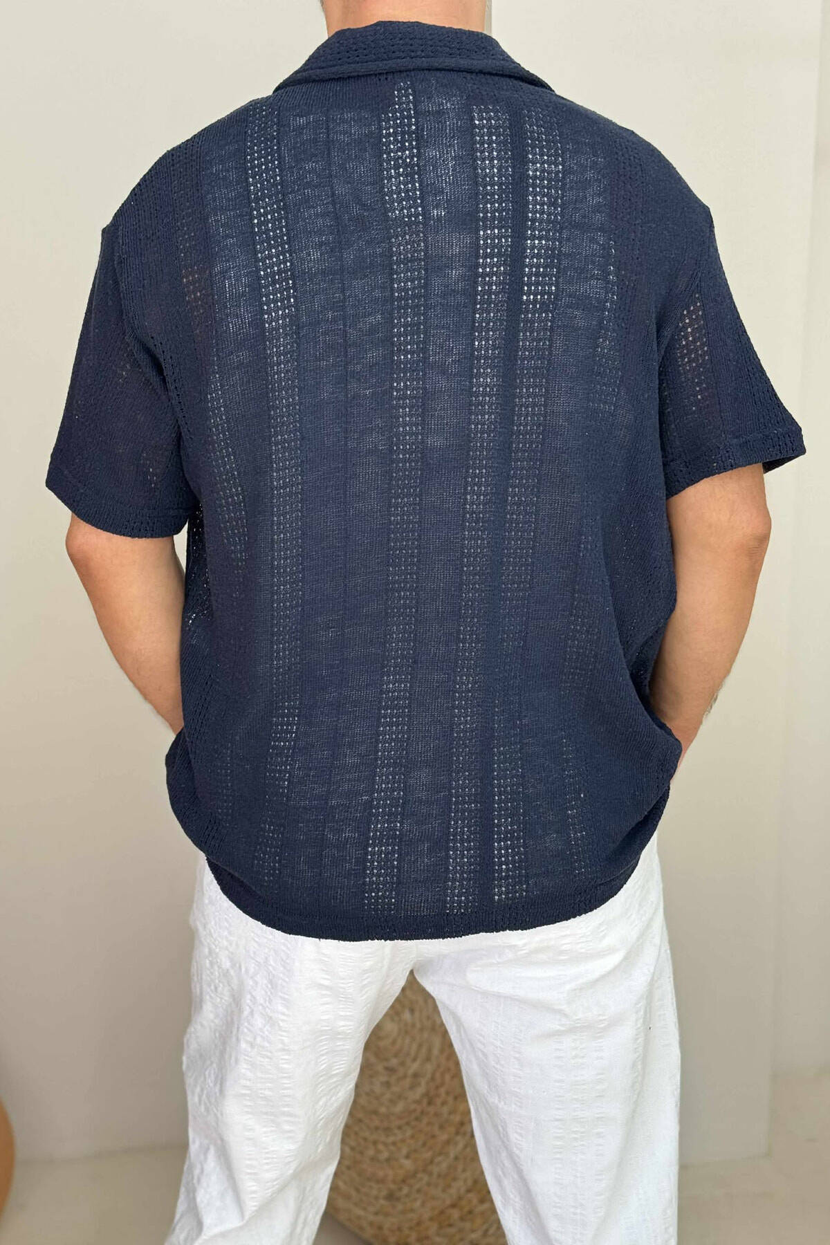 KËMISHË E THJESHTË ME MËNGË TË SHKURTRA PËR MESHKUJ NË NGJYRËN BLU E ERRËT