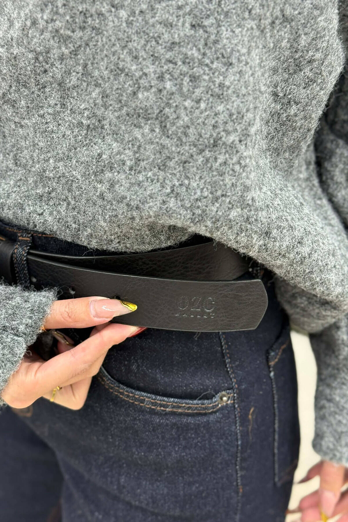 SIMPLE BUCKLE LEATHER WOMEN BELT BLACK+GOLD/ZEGO