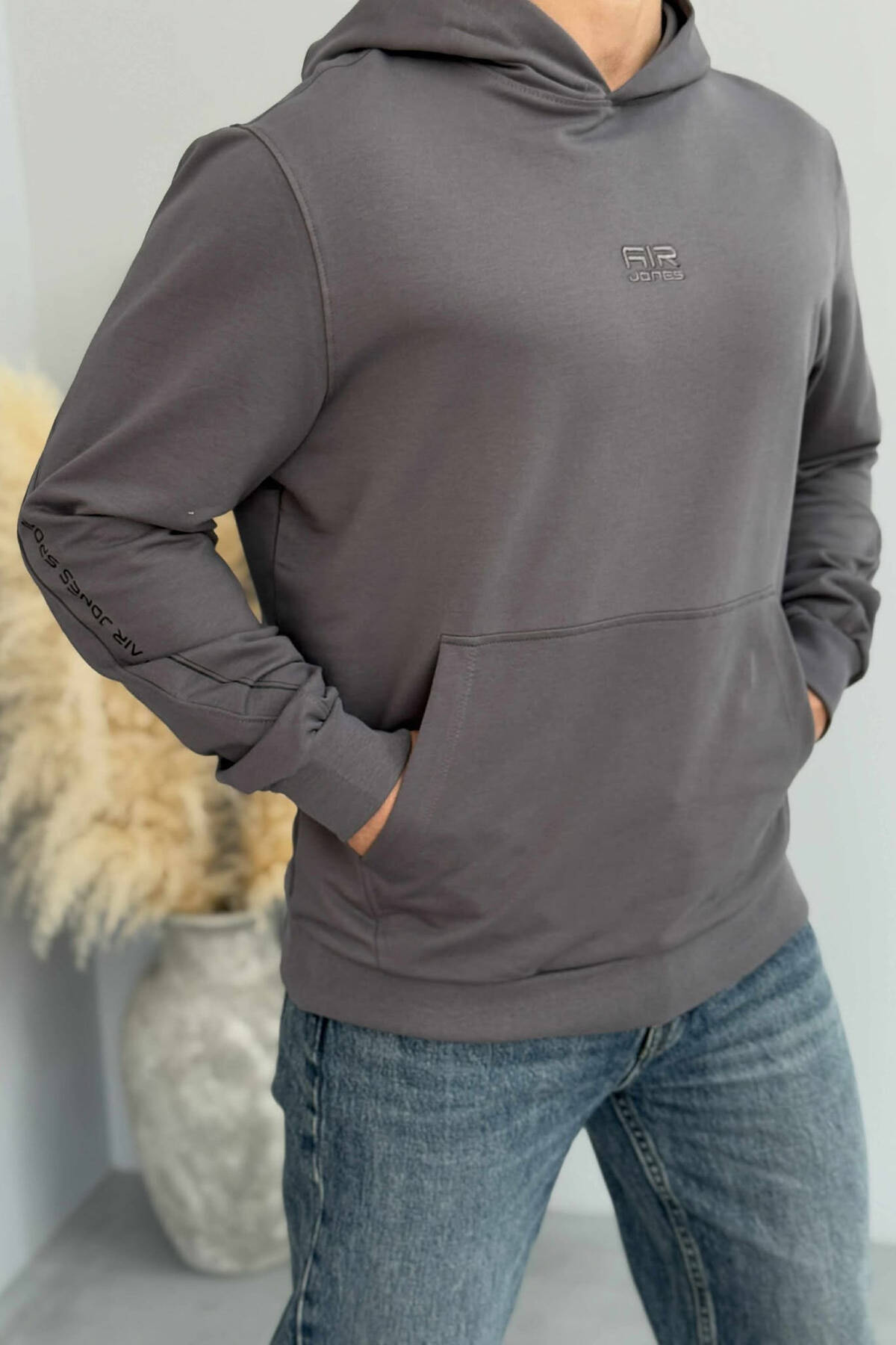 HOODIE ME LOGO TË THJESHTË TË VOGËL PARA PËR MESHKUJ NË NGJYRËN GRI TË ERRËT