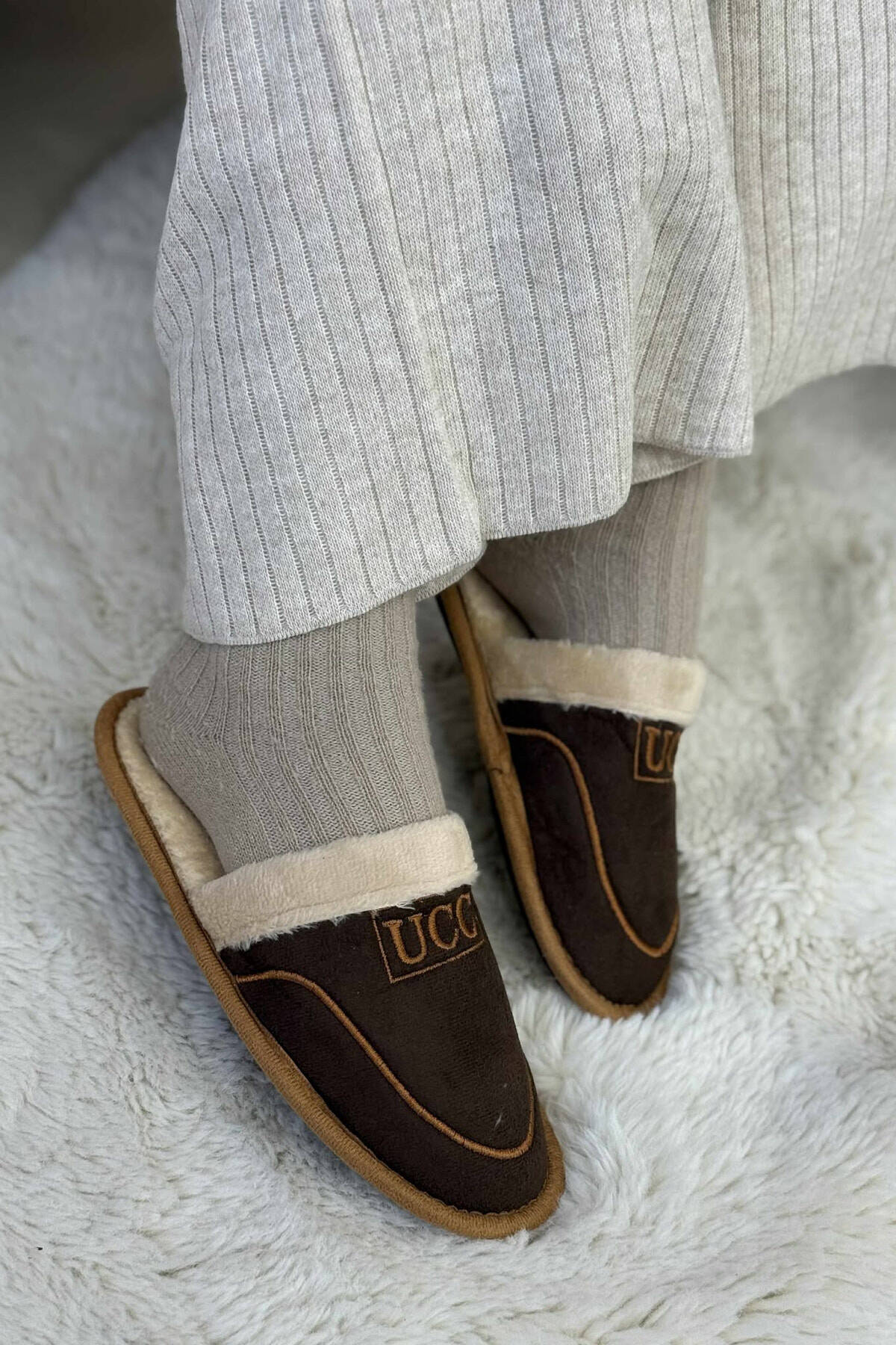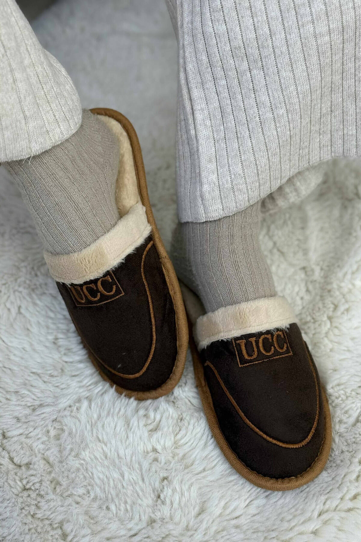SIMPLE SMALL LOGO WOMEN SLIPPERS DARK BROWN/KAE