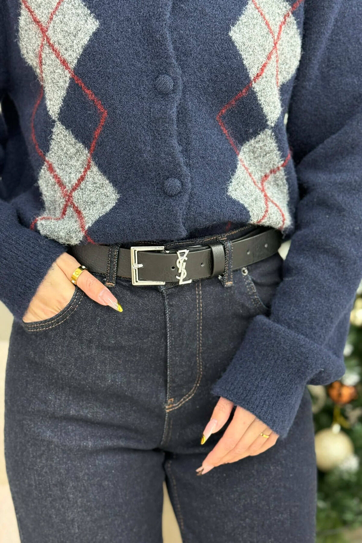 SIMETRIC LETTER D BUCKLE DESIGN WOMEN BELT BLACK+SILVER/ZEZE+ARGJEND