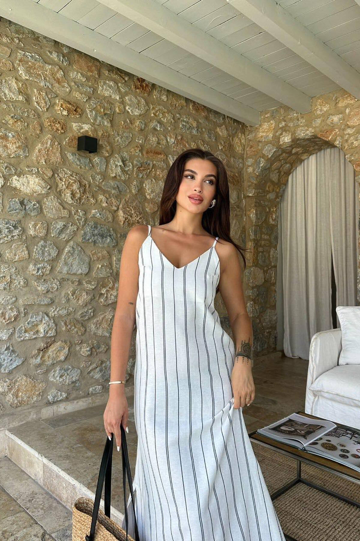 SIMPLE STRIPES WOMEN DRESS CREAM/KREM