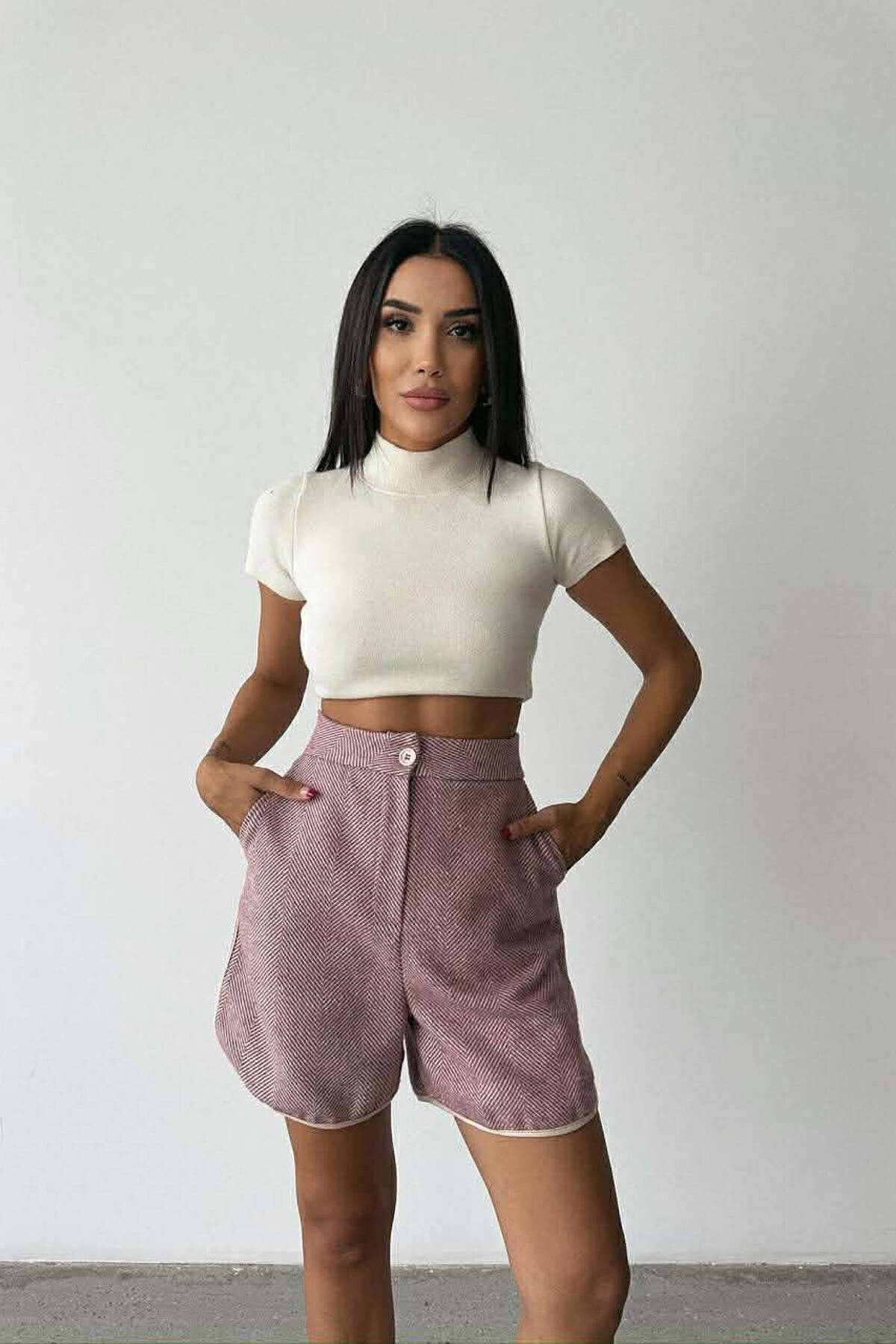 STRIPE DESIGN SIMPLE WOMEN SHORTS CREAM/KREM