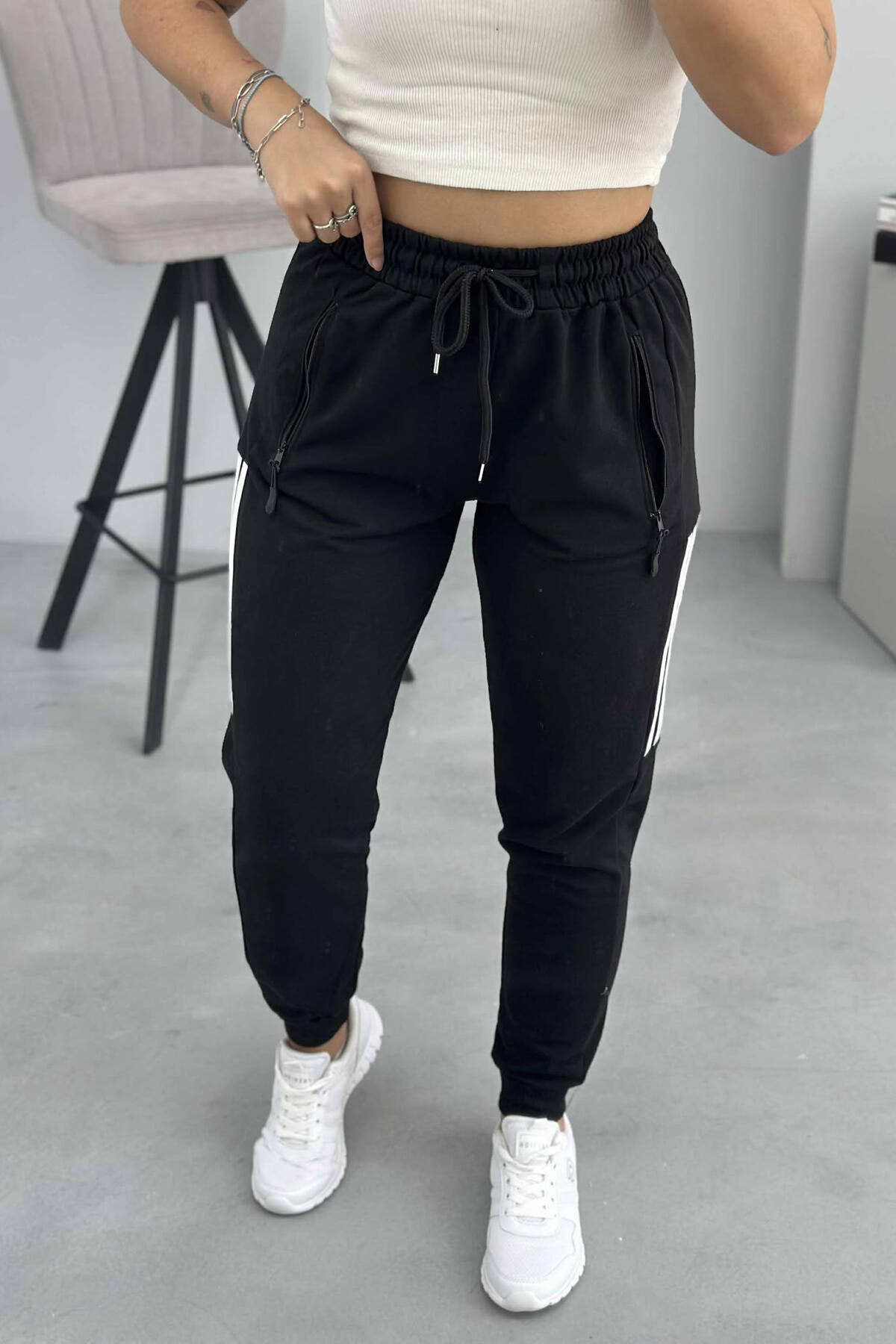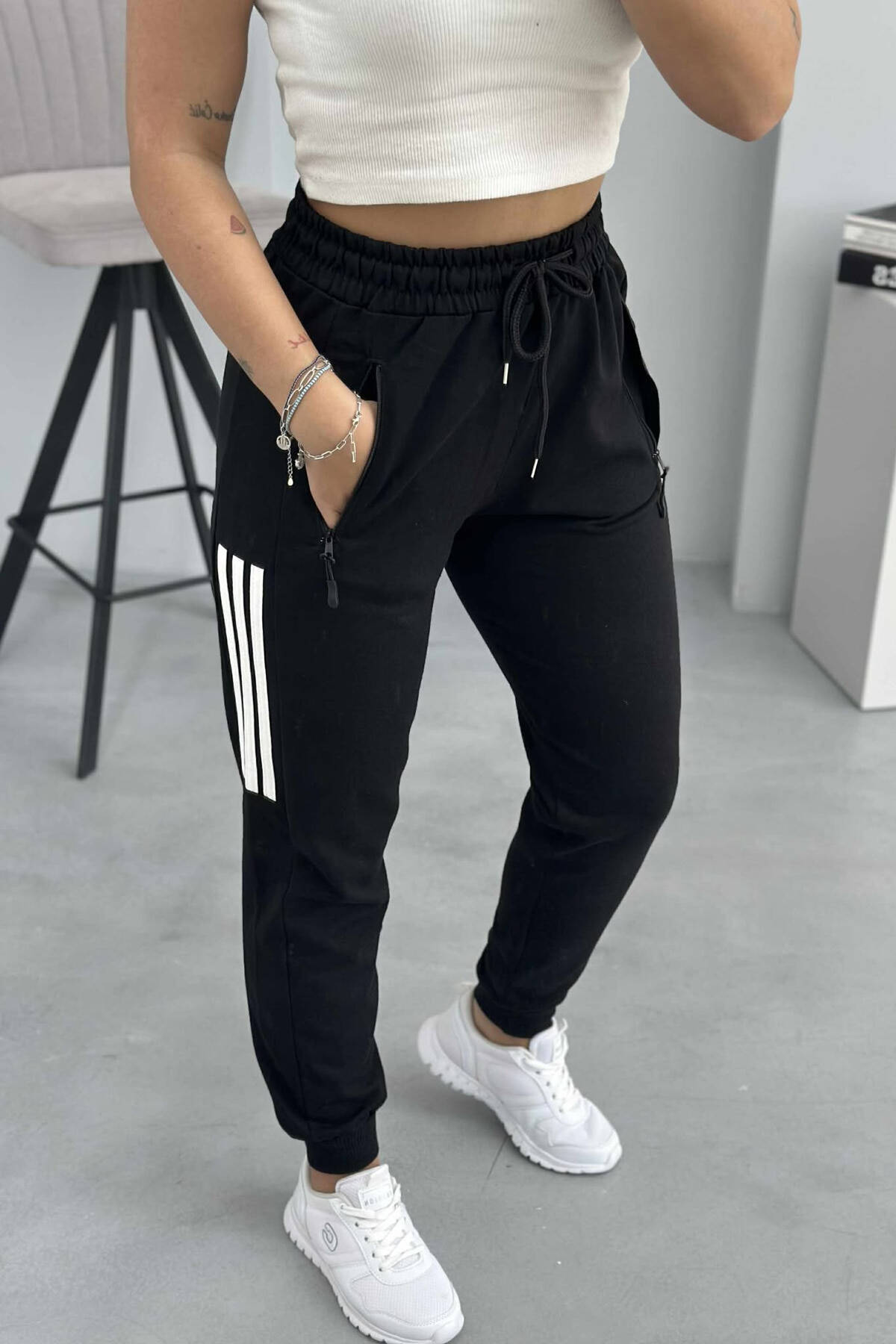 ELASTIC WAIST LACINGS STRIPED WOMEN SWEATPANTS BLACK/ E ZEZE