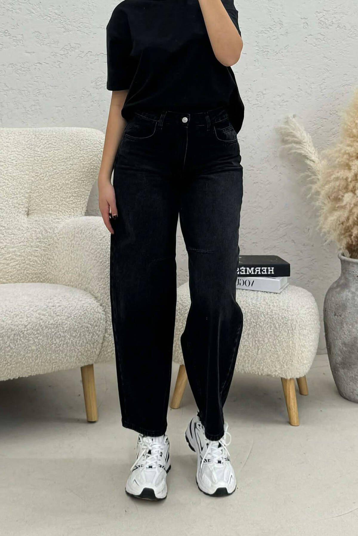 SIMPLE WIDE LEG WOMEN JEANS BLACK/ E ZEZE