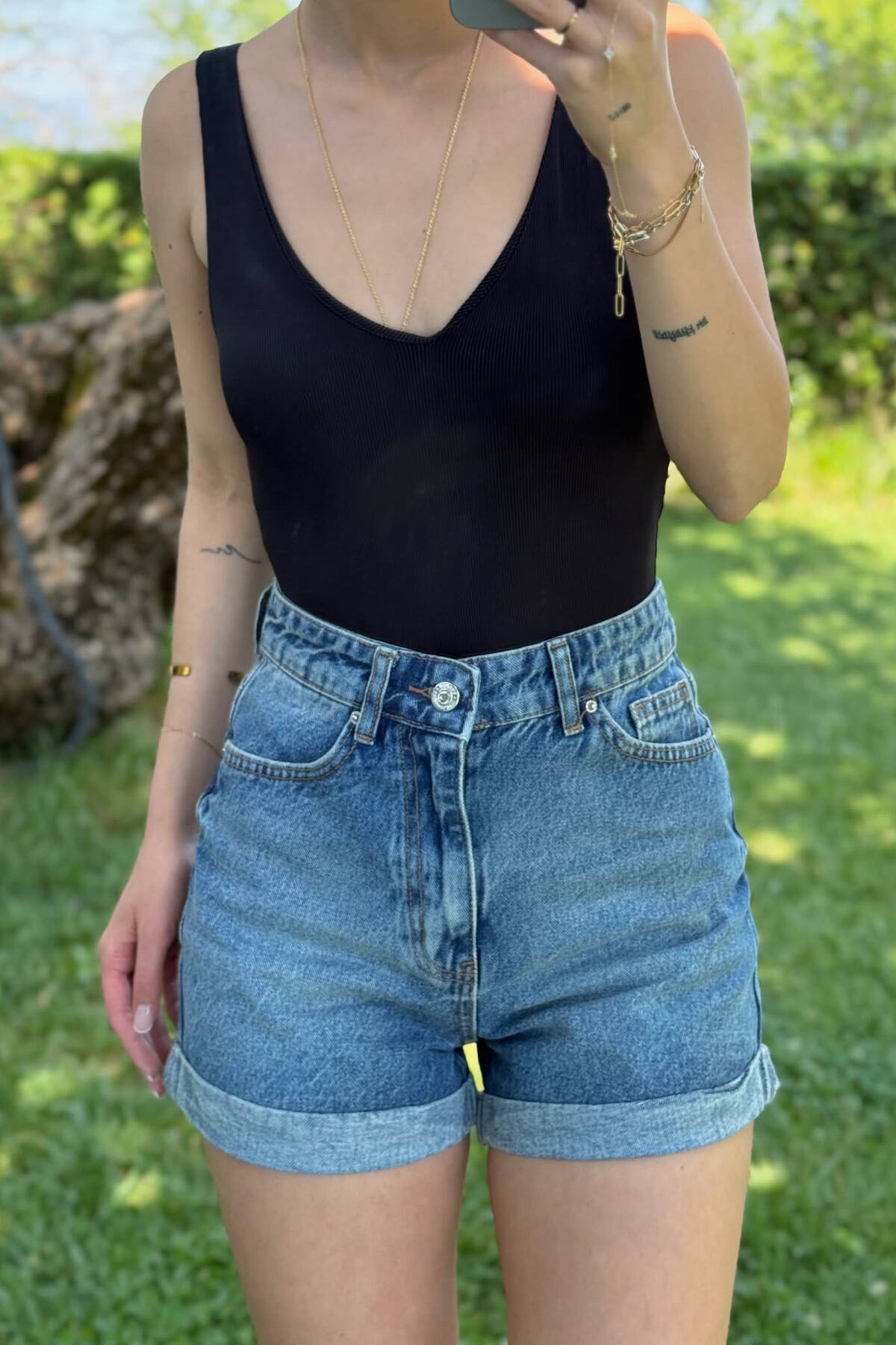 XHINSE TË SHKURTRA TË THJESHTA PËR FEMRA NË NGJYRËN BLU