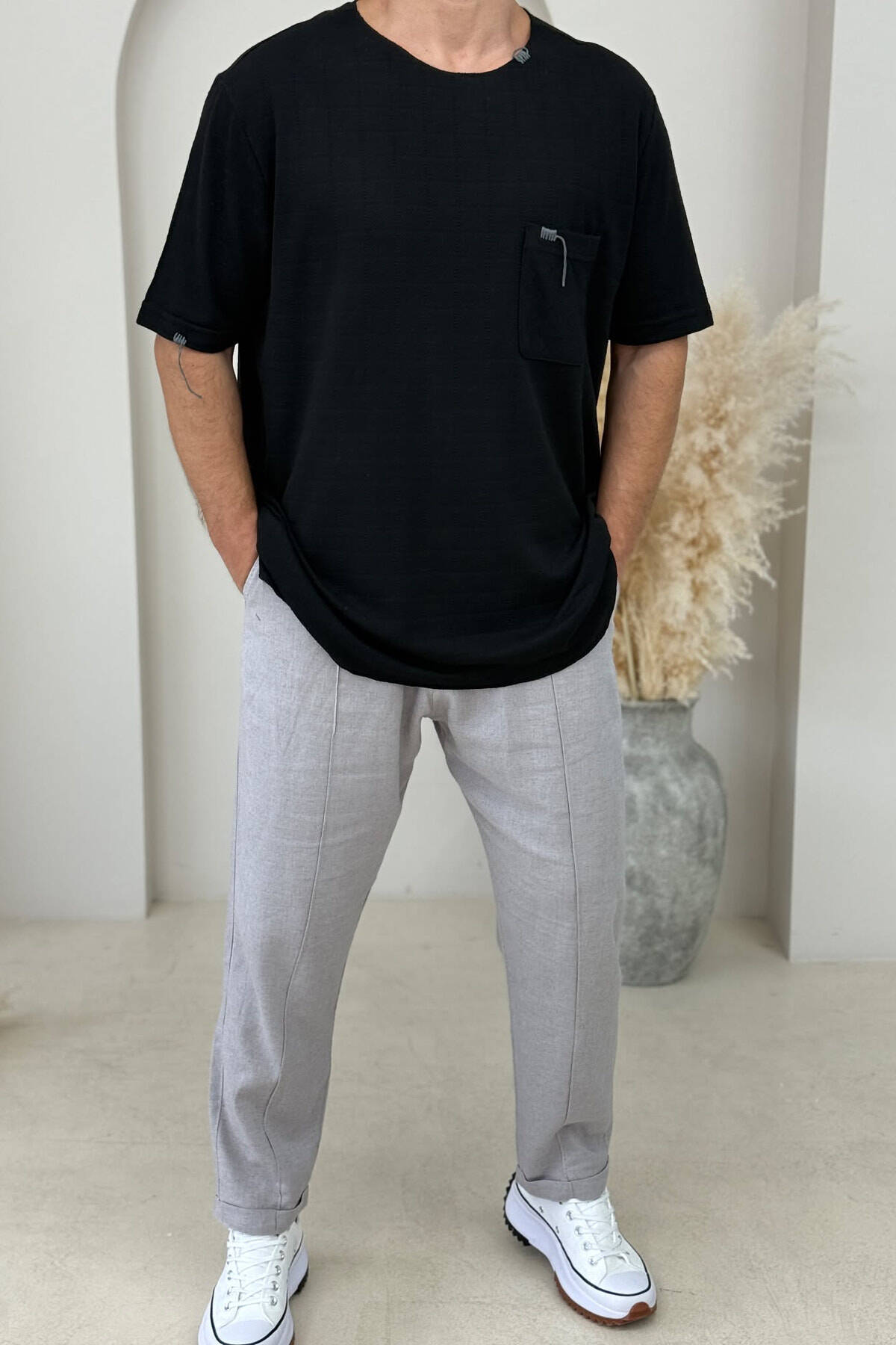 SINGLE POCKET DETAIL ROUND NECK MEN T-SHIRT BLACK/ E ZEZE