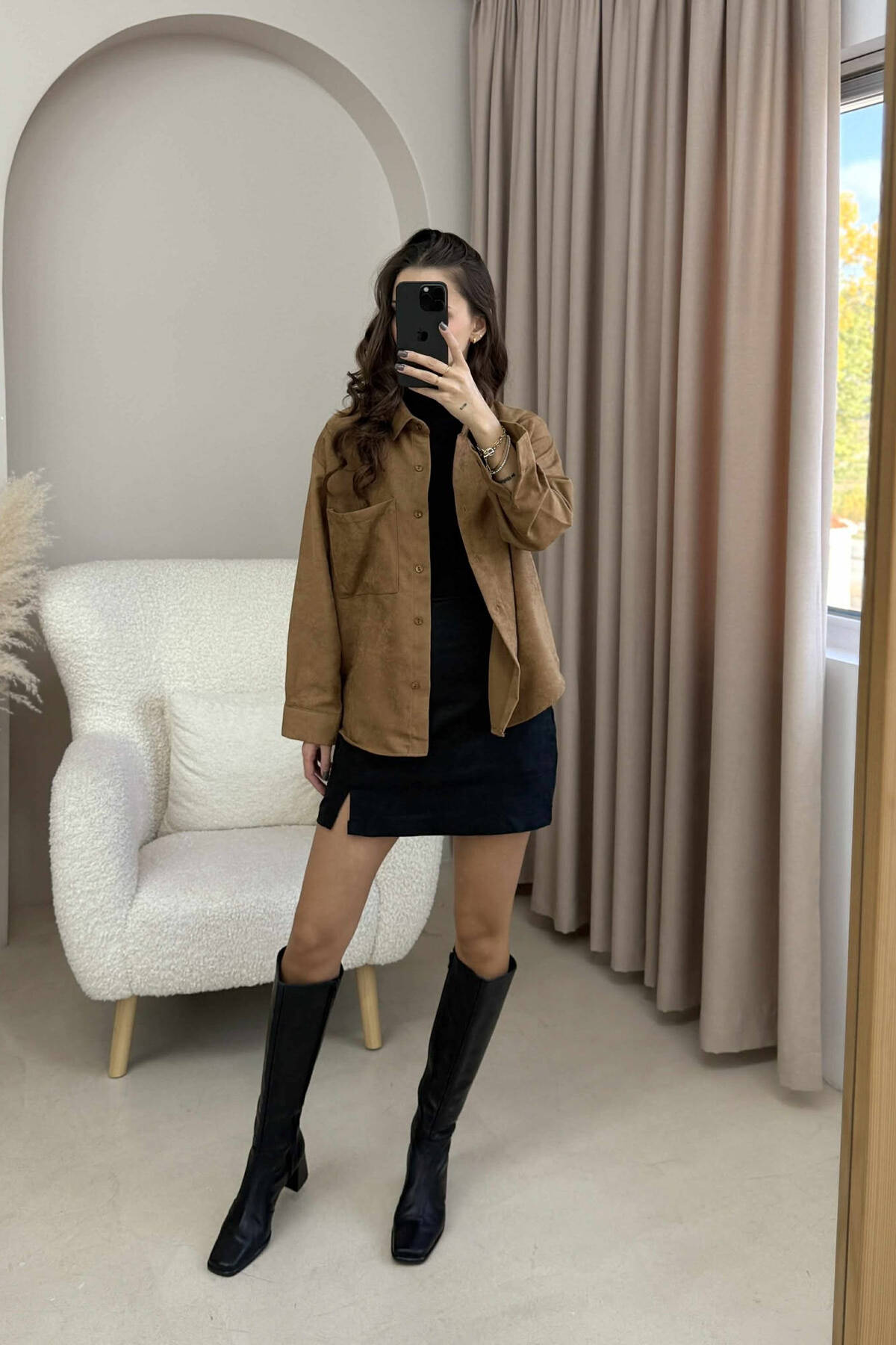 SINGLE POCKET ONE COLOR WOMEN SHIRT BROWN/KAFE