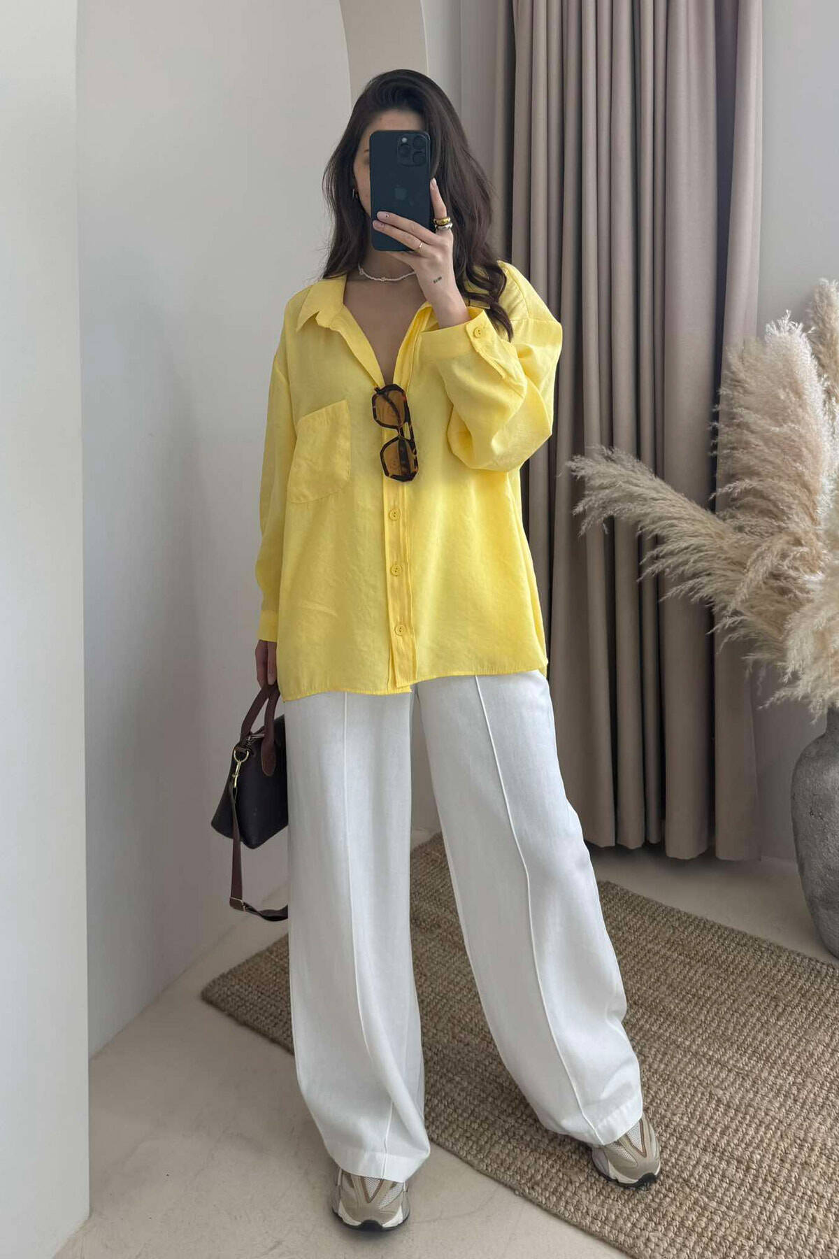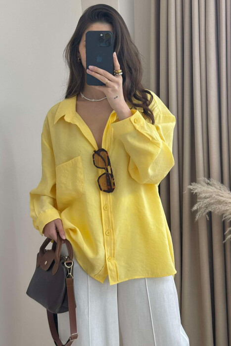 SINGLE POCKET ONE COLOR WOMEN SHIRT YELLOW/E VERDHE